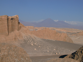 Nachmittags Fahrt in das bizarr anmutende und faszinierende Valle de Luna, eine karge, unwirkliche und mondähnliche Landschaft. Herrliche Panoramablicke erwarten Sie an der Großen Düne und an der geologischen Formation Tres Marias. Höhepunkt ist der beeindruckende Sonnenuntergang, der die Andenkette mit den Vulkanen Licancabur und Lascar in herrlichen Rot- und Violetttönen erstrahlen lässt.
