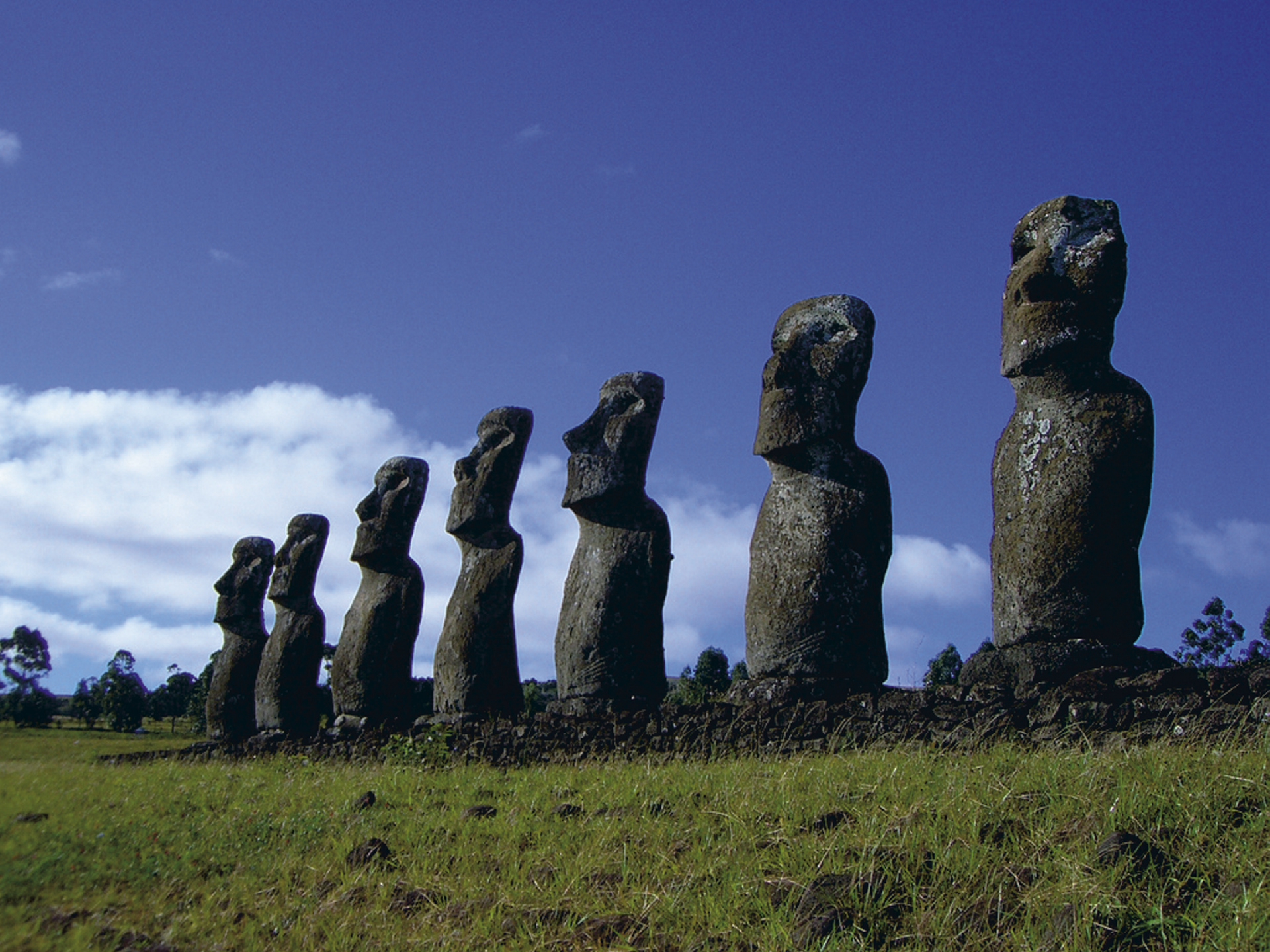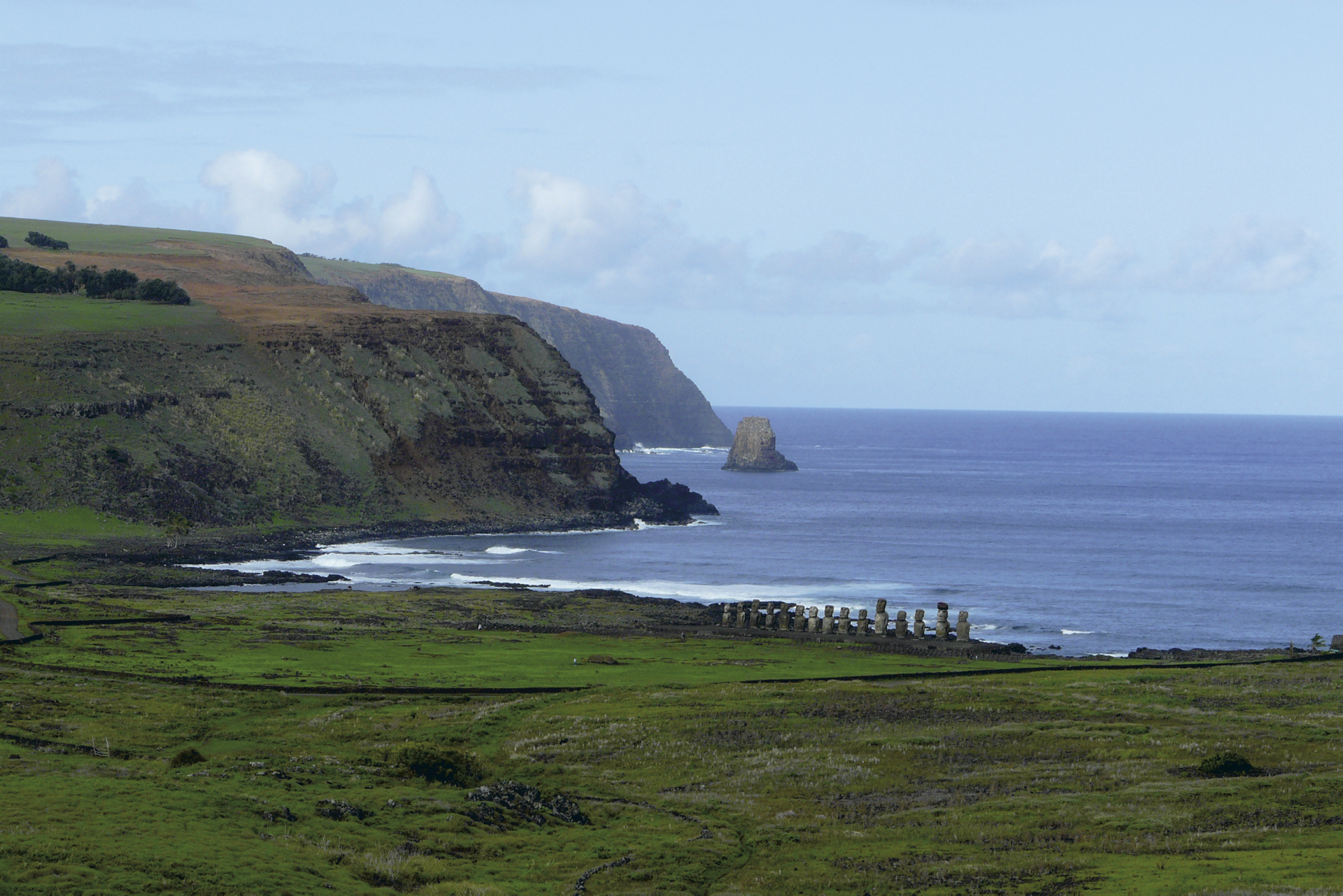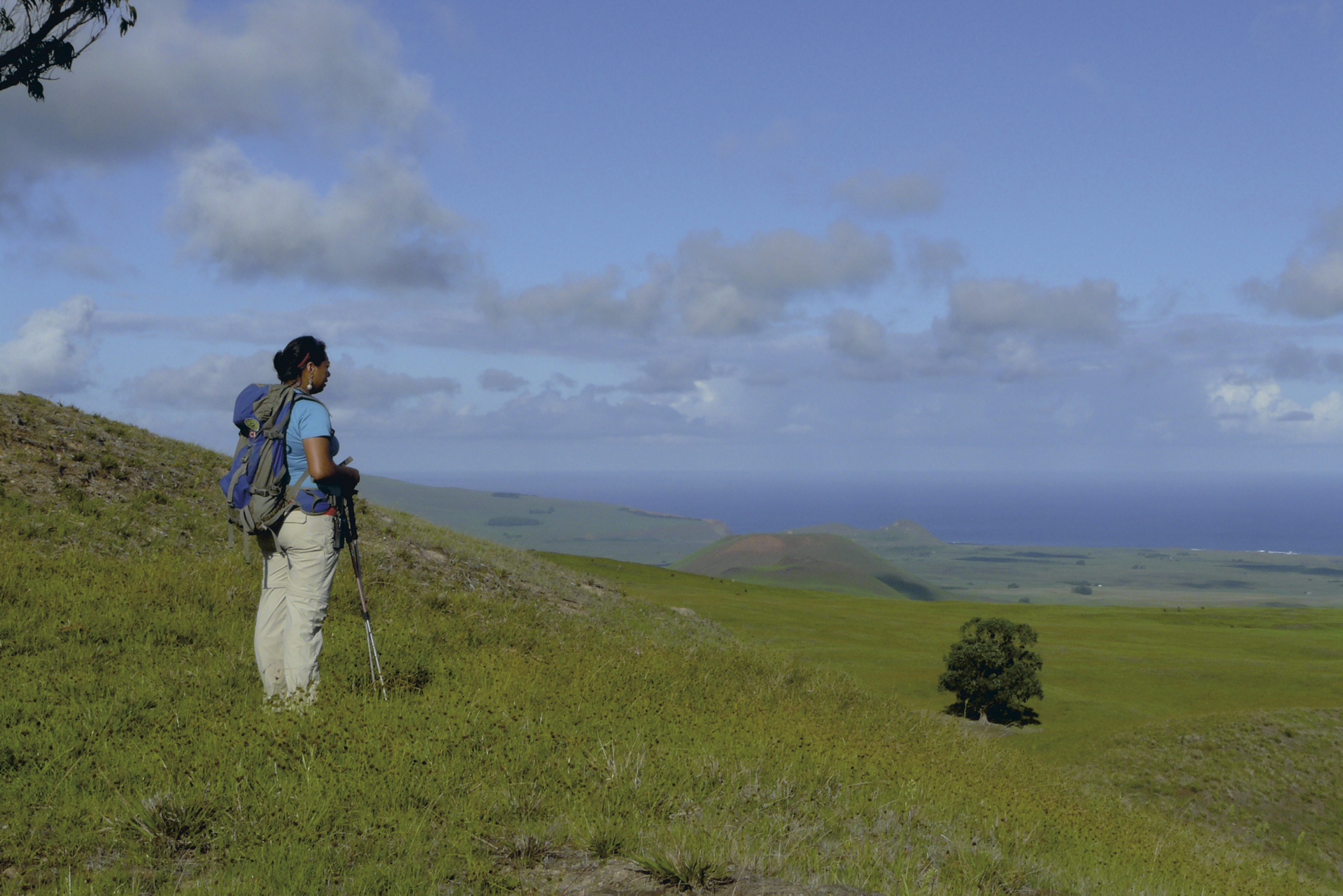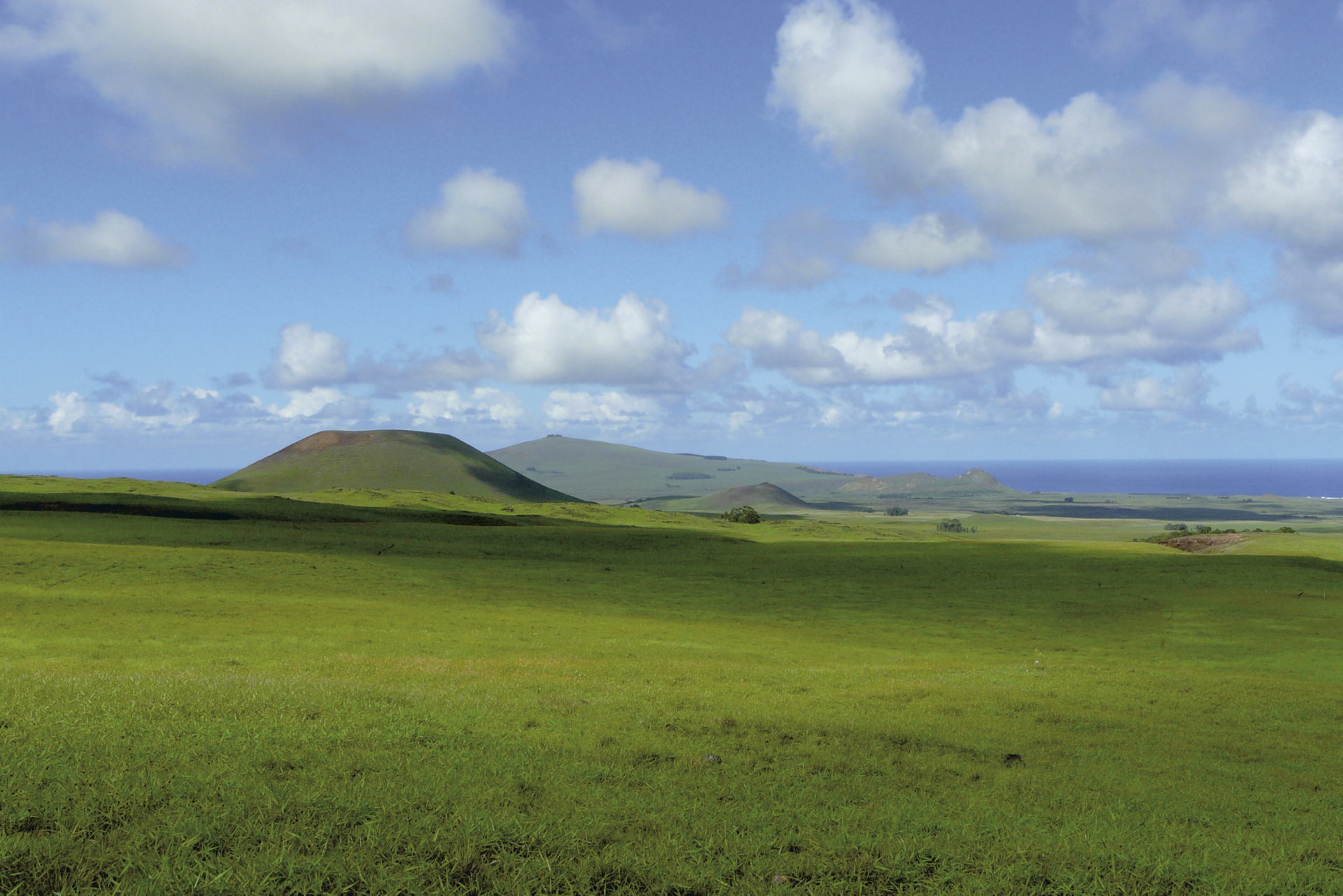 Ihre Wanderung beginnt am Fuß des jüngsten und höchsten Vulkans der Insel, dem Terevaka. Durch weite Landschaften wandern Sie ca. 500 Höhenmeter bergauf. Oben angekommen können Sie Ihren Blick über die Osterinsel und den Pazifik schweifen lassen. Nach einer Pause wandern Sie zur Stätte Ahu Akivi. Sieben gleichgroße Moai blicken hier, im Gegensatz zu den meisten anderen der Insel, in Richtung Pazifik.