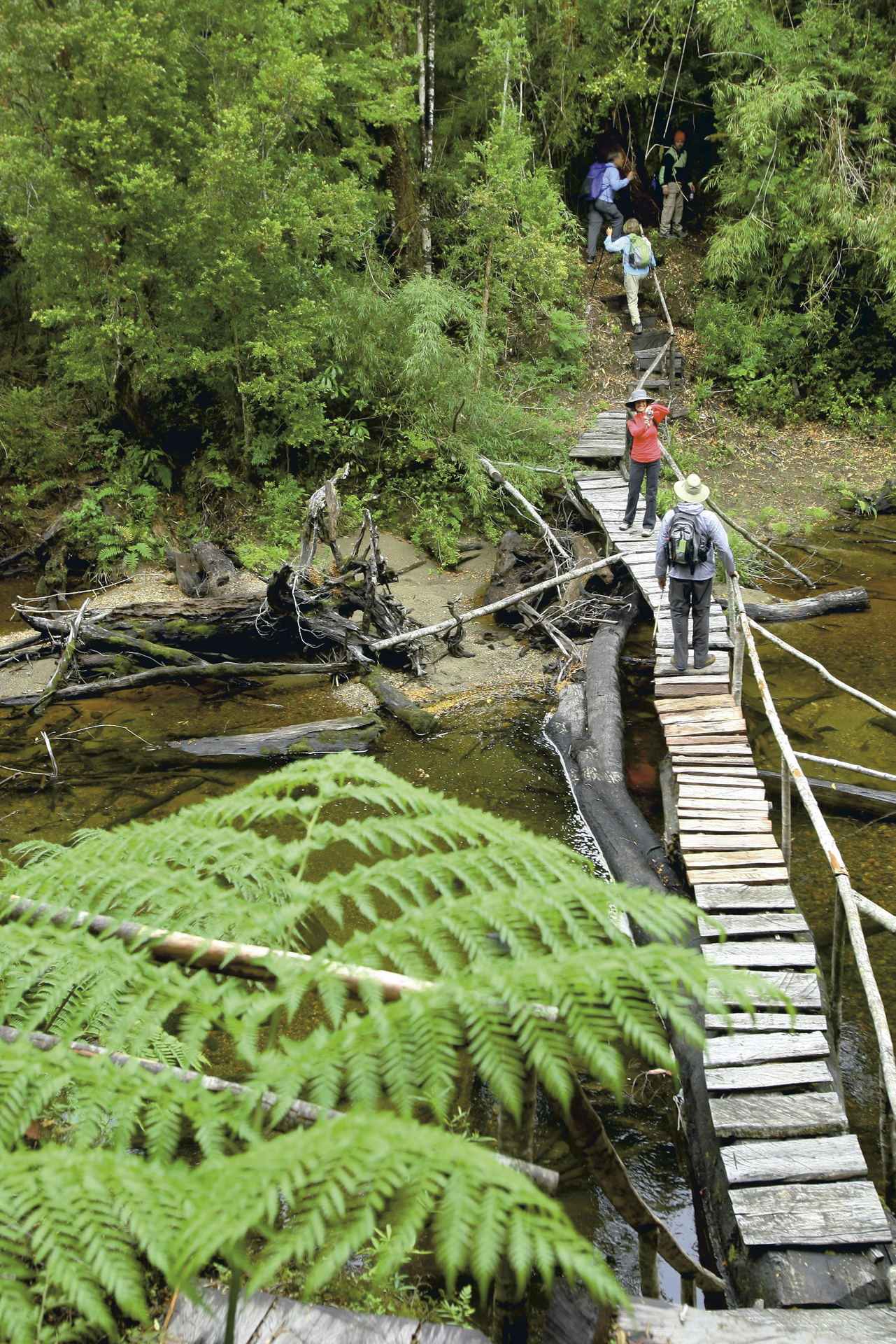 Puelo - Alerce Andino - Lenca (ca. 70 km; F).Vom kleinen Fährhafen Caleta Puelche setzen Sie über nach Caleta Arena, wo Sie unbedingt die köstlichen Empanadas mit frischen Meeresfrüchten probieren sollten. Auf der Carretera Austral geht es von dort weiter bis nach Lenca, wo Sie in einer rustikalen Hütte übernachten werden. Wir empfehlen den Besuch des nahegelegenen Nationalparks Alerce Andino, der den einheimischen Alerce-Baum schützt. Dieser wächst ausschließlich in dieser Gegend. Die ältesten Exemplare sind bis zu 3.500 Jahre alt und zählen damit zu den ältesten Lebewesen dieser Erde.