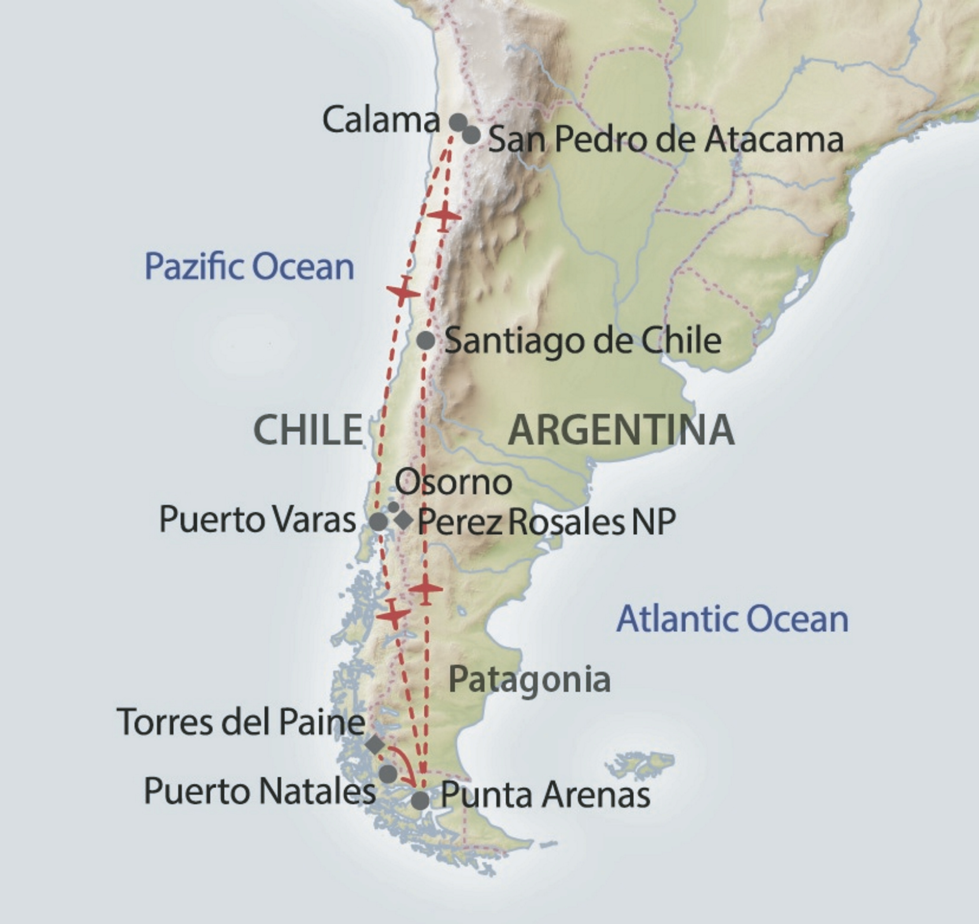 Chile, das schmale, lang gestreckte Land an der Westküste Südamerikas, ist ein wahres Paradies der Gegensätze. Von der trockenen Atacama-Wüste im Norden bis zu den eisigen Gletschern Patagoniens im Süden erstreckt sich eine vielfältige Landschaft, die einzigartig ist. Hier treffen Extreme aufeinander, die zu einem faszinierenden Mosaik verschmelzen und Besucher aus aller Welt begeistern. Während dieser Reise erleben Sie hautnah, was Chile so besonders macht.