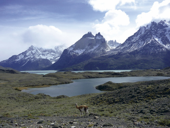 Puerto Natales – Nationalpark Torres del Paine (F/M).Auf dem Weg in den Nationalpark Torres del Paine halten Sie an der Höhle des Milodon, wo Überreste eines Urfaultieres gefunden wurden. Genießen Sie danach im Nationalpark herrliche Ausblicke auf das Bergmassiv und türkisfarbene Seen. Halten Sie Ausschau nach Guanacos, Füchsen, Adlern und Kondoren.