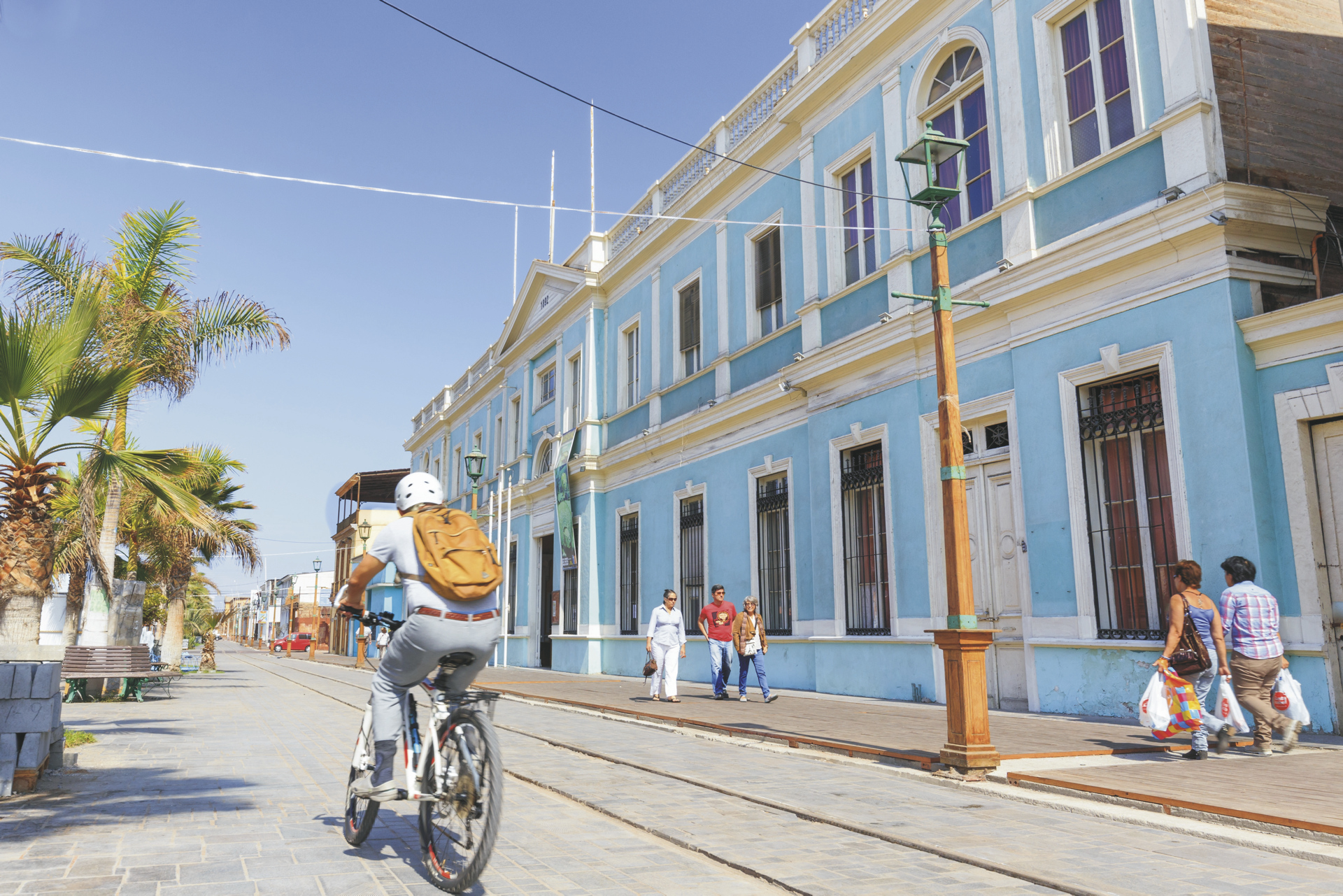 Iquique (F).Genießen Sie einen entspannten Tag am Meer. Lohnenswert ist ein Spaziergang entlang der Strandpromenade in Richtung der Altstadt. Alte Holzhäuser geben vor allem am Baquedano Boulevard davon Zeugnis, wie die Stadt ursprünglich ausgesehen hat.