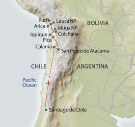 Tauchen Sie abseits der Haupttourismusströme ein in die Naturschönheiten der Atacama-Wüste und des chilenischen Altiplano-Hochlands. Die Route führt streckenweise durch kaum erschlossene Regionen, die normalerweise für Selbstfahrer nicht empfohlen werden. Die Sicherheit einer Kleingruppe und die Begleitung durch eine fachkundige Reiseleitung machen dies jetzt möglich! Mit Ihrem eigenen Mietwagen fahren Sie u.a. durch farbenprächtige Hochlandwüsten und kleine Dörfer zu einsam gelegenen Lagunen und Salzseen, die umrahmt werden von den majestätischen Vulkanbergen der Anden. Der Reiseleiter fährt abwechselnd in den Fahrzeugen der Teilnehmer mit und steht jederzeit mit Rat und Tat zur Seite.