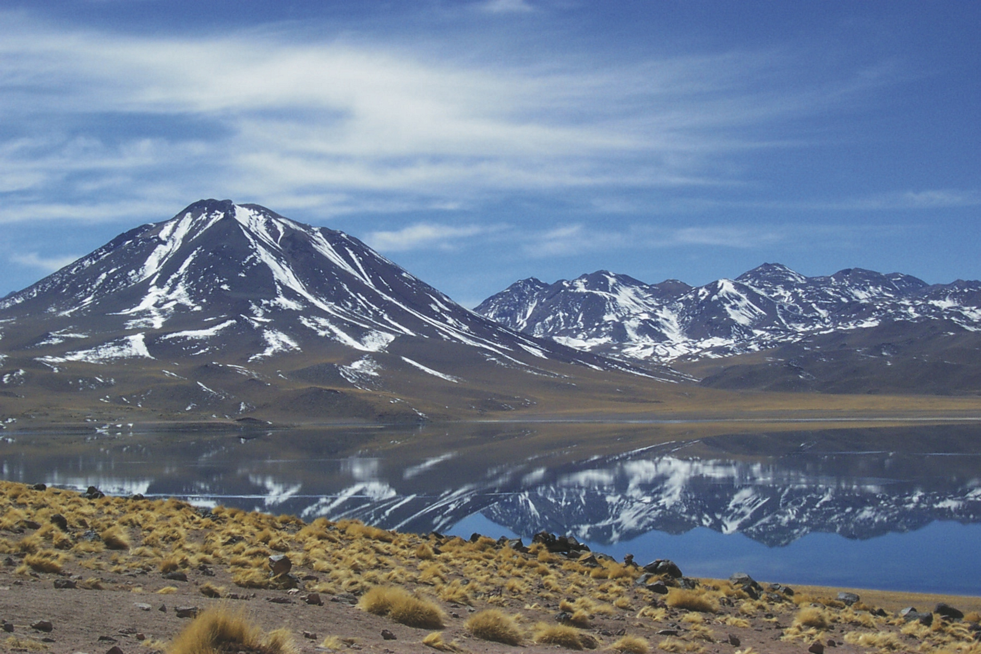 San Pedro de Atacama (F).Auf dem Weg in die Hochanden besuchen Sie die Lagune Chaxa im Salar de Atacama. Der nächste Halt ist bei den rötlich gefärbten Felsformationen der Piedras Rojas (3.800 m), wunderschön gelegen an einer Lagune. Danach erreichen Sie die Zwillingslagunen Miscanti und Miniques (4.200 m), deren dunkle Wasserfarben im Kontrast zu den weißen Salzkrusten eine beeindruckende und majestätische Szenerie vor den mächtigen Vulkangipfeln bieten.