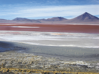 Colchani - Siloli Wüste (F/M/A).Sie erreichen die Vulkanregion Lipez. Vorbei am Vulkan Ollague gelangen Sie zu den wie an einem Band aufgereihten Hochlandlagunen. Jede auf ihre Art ein Juwel in einer unwirklichen Landschaft. Genießen Sie die majestätische Landschaft und beobachten Sie unzählige Flamingos, die im Wasser nach Nahrung suchen. Nachmittags tauchen Sie ein in die surreale und farbenprächtige Wüste Siloli.