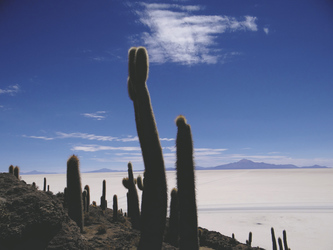 Salar de Uyuni (F/M).Dieser Tag steht ganz im Zeichen des Salar de Uyuni. Dieser ist mit 12.000 km² der größte Salzsee der Erde. Sie befahren das unendliche Weiß und genießen dabei herrliche Panoramen. Mitten aus dem Salar ragt die Insel Incahuasi heraus. Diese ist mit bis zu 12 Meter hohen Kakteen bewachsen. Vom höchsten Punkt der Insel aus haben Sie herrliche Ausblicke auf den Salar und die umliegenden Vulkanberge.