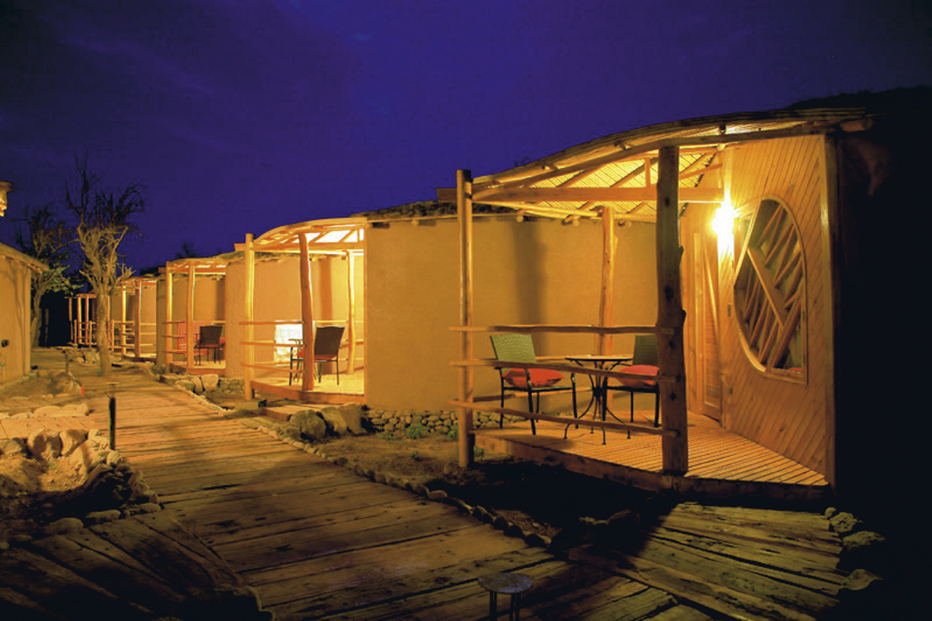 Elemente der lokalen Architektur spiegeln sich in den 21 Bungalows wieder. Raffiniert und gemütlich eingerichtet, sind diese ausgestattet mit Telefon, Minibar, Heizung, Ventilator, Bad mit DU/WC und einer kleinen Terrasse. Die Superior-Zimmer sind mit 28m² etwas größer.