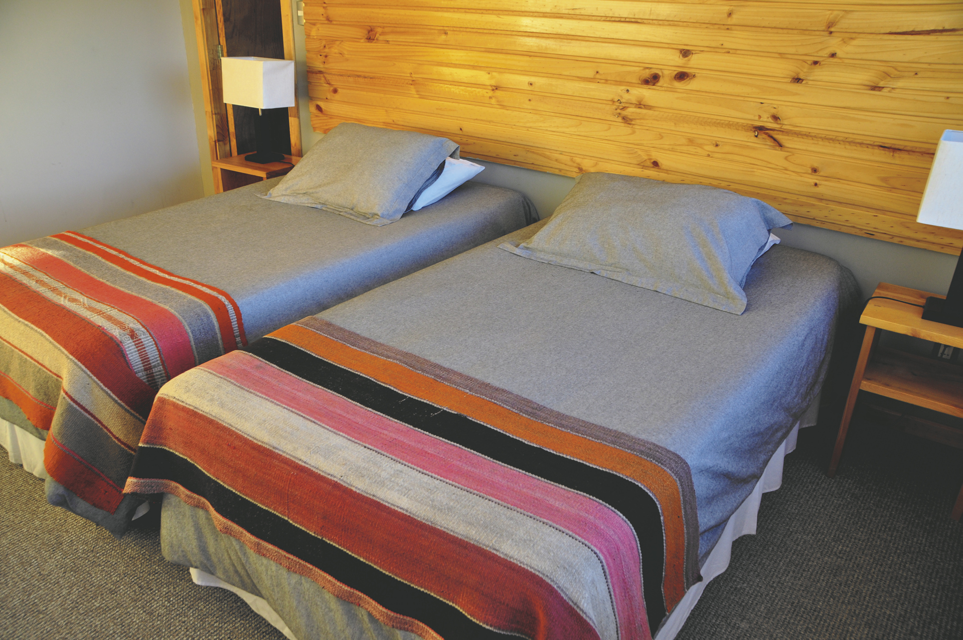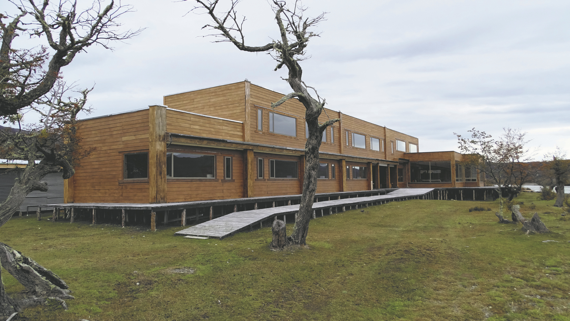 Versteckt in einem großen Garten mit patagonischem Baumbestand fügt sich das Hotel harmonisch in die Landschaft ein. Viel Holz und große Panoramafenster sorgen für Atmosphäre und wunderschöne Aussichten auf die Berge. In der Lodge befindet sich eine Lounge mit Kamin, eine Bar und in der Nähe ein Restaurant.