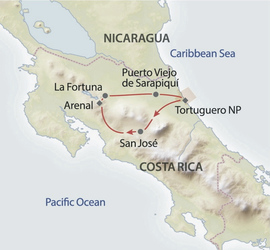 Auf dieser kurzen Kennenlern-Rundreise erhalten Sie einen Einblick in die unterschiedlichen Vegetationszonen des Landes. In La Fortuna wandern Sie durch den üppigen Regenwald, unterstützen in Sarapiqui die Wiederaufforstung und im Tortuguero Nationalpark lassen Sie sich in Booten durch die ruhigen Kanäle treiben.
