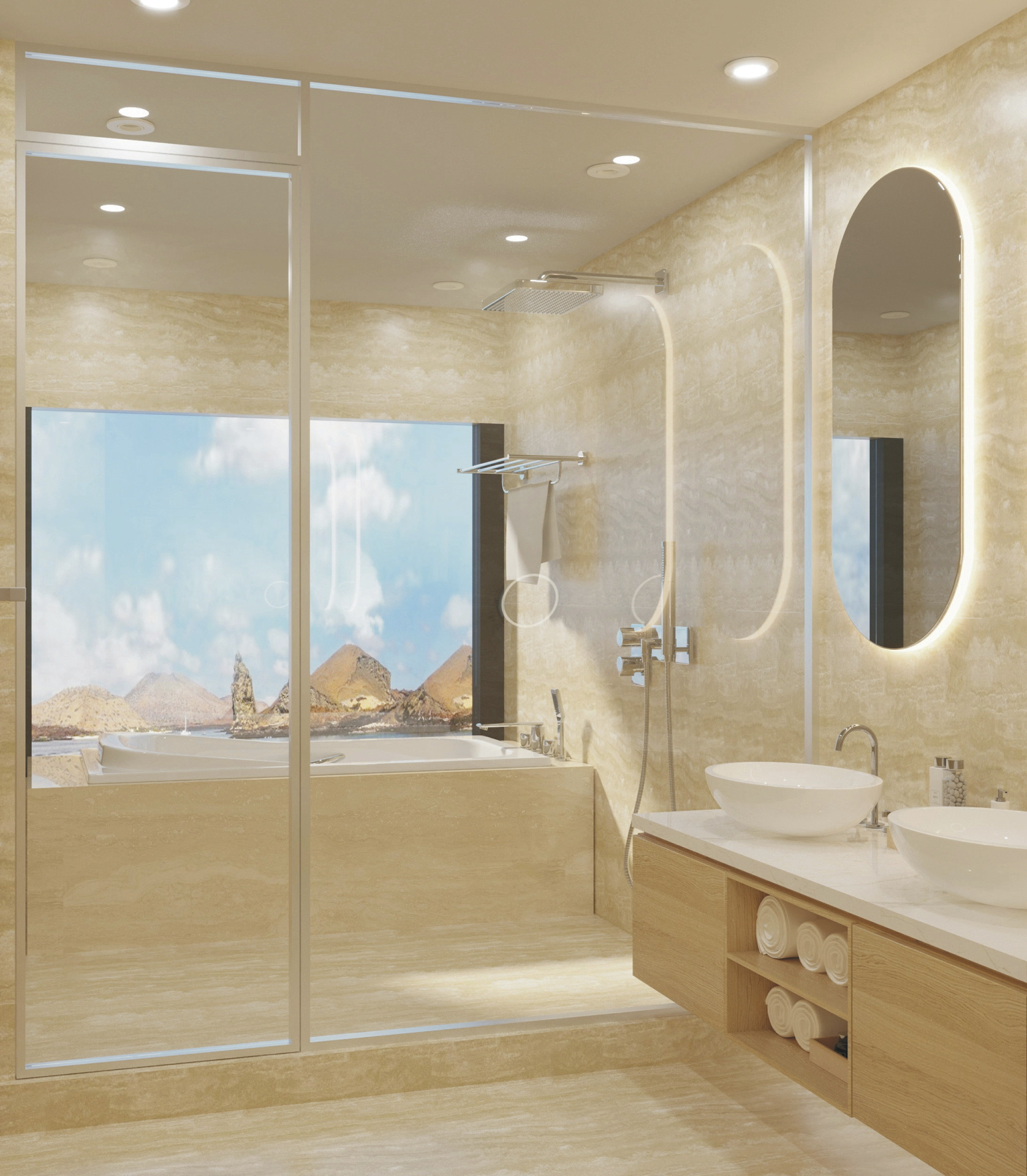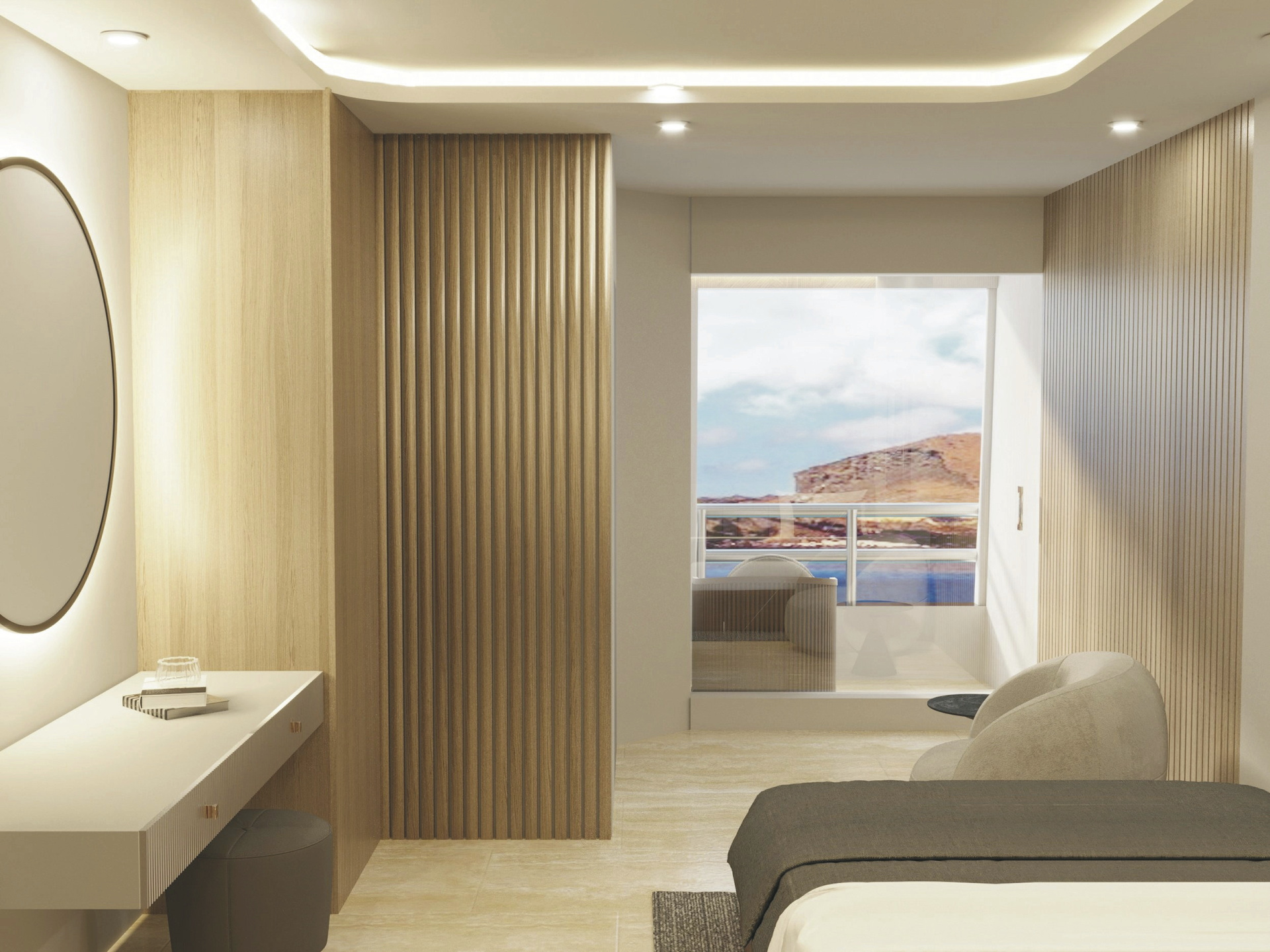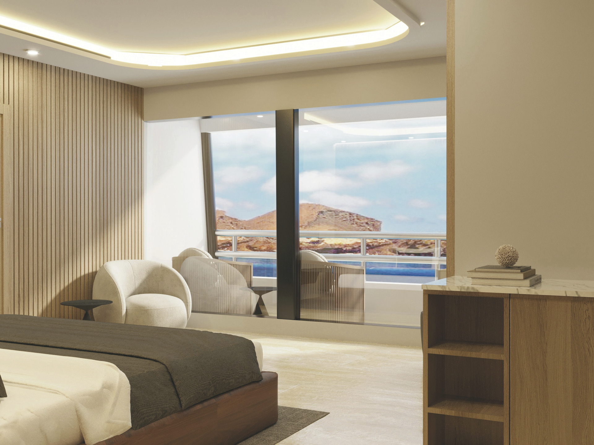 Alle hochmodernen Suiten verfügen über einen eigenen Balkon, eine Badewanne mit Blick auf den Ozean, raumhohe Fenster und einen begehbaren Kleiderschrank. Es gibt 6 Twin-Suiten, 4 Double-Suiten und 2 Single-Suiten.