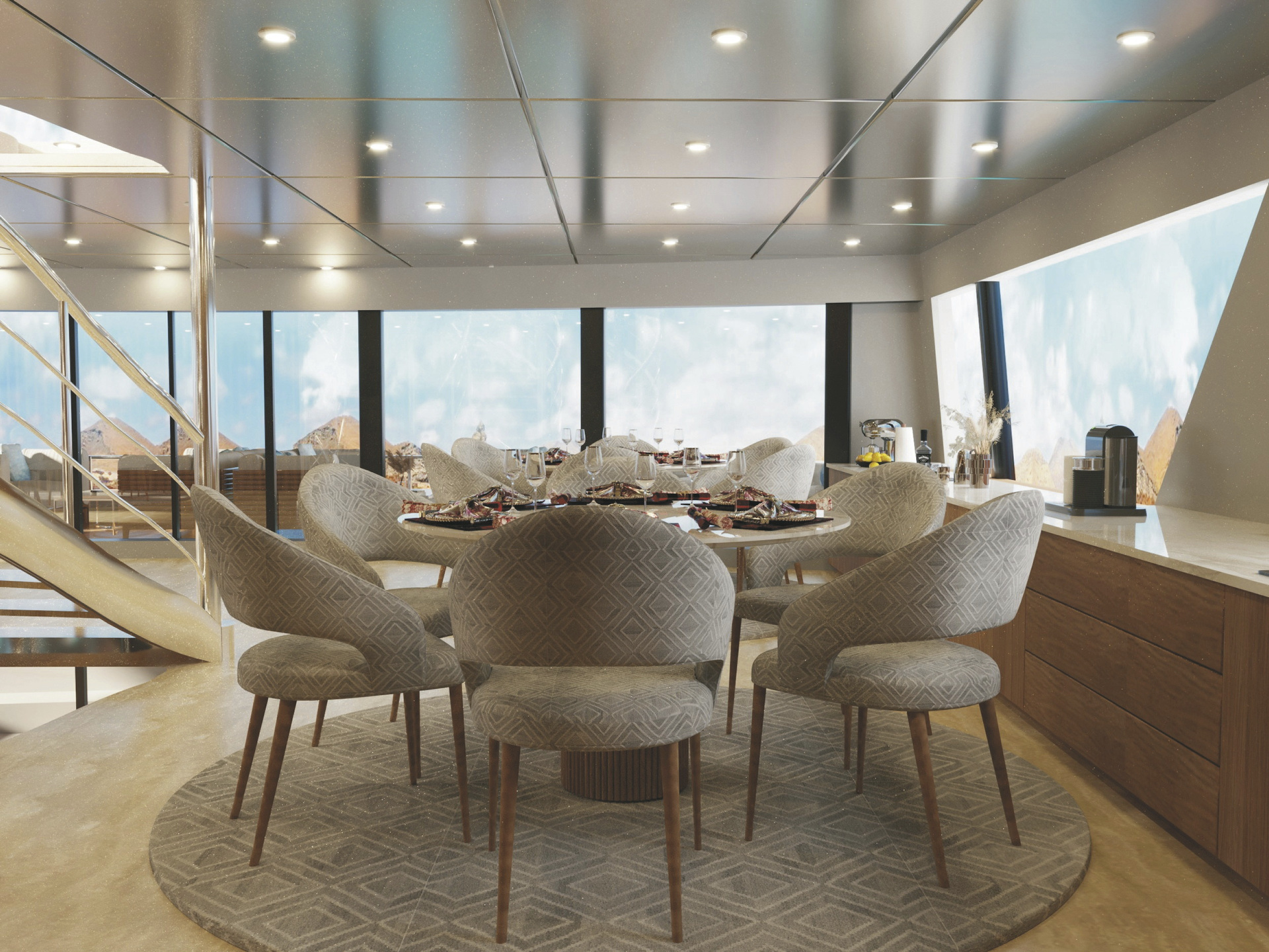Es erwartet Sie ein unvergleichlicher Service, einschließlich eines Full-Service-Spas, eines Hamams, eines Auspack- und Wäscheservice, der von 15 Besatzungsmitgliedern erbracht wird, darunter ein Butler, eine Masseurin und ein Kreuzfahrtdirektor. Nicht nur die Landschaft ist einzigartig, auch durch ein besonderes Menü, Koch- und Cocktailkurse wird diese Reise zu einem echten Erlebnis.