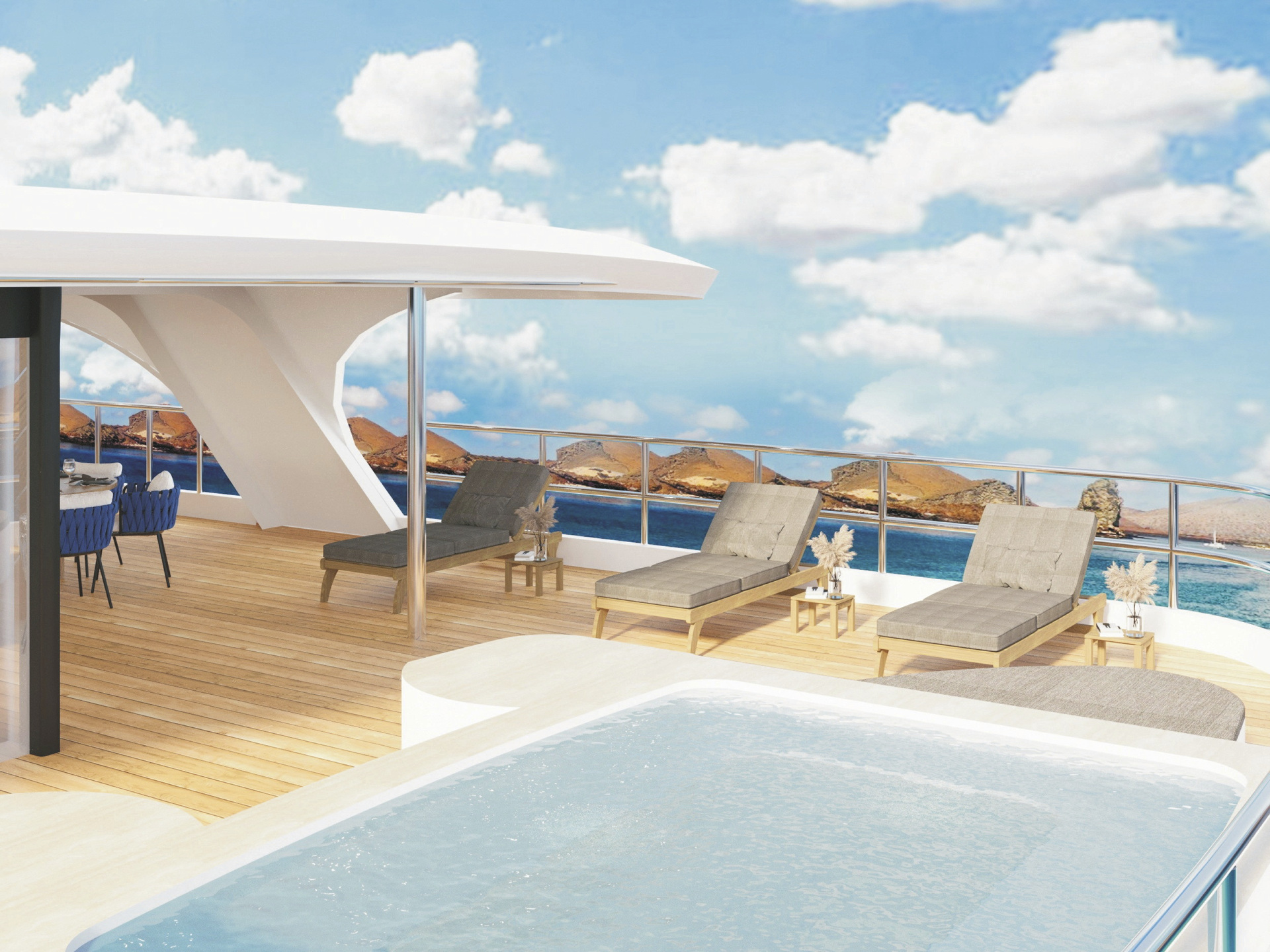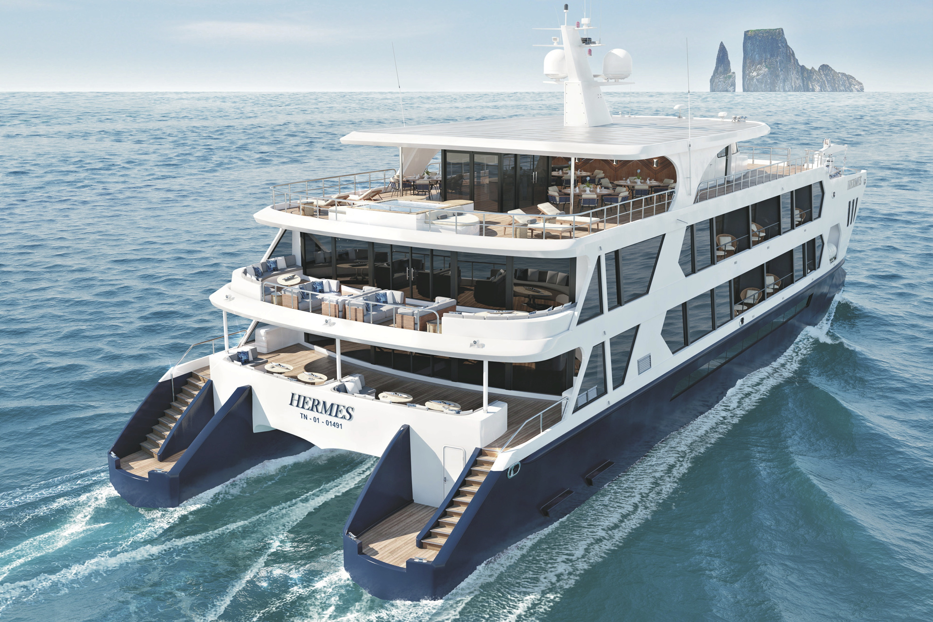 Der Hermes Mega-Katamaran ist die erste Ultra-Luxus-Kreuzfahrt, die die Galapagos-Inseln ansteuert. Mit einer maximalen Kapazität von 20 Gästen bietet die Hermes ein unvergleichliches Erlebnis durch Exklusivität, hochwertige Ausstattung und ein Verhältnis von Besatzung zu Gästen von fast 1 zu 1. An Bord der Hermes können Sie die Intimität eines kleinen Schiffes erleben, ohne auf die Annehmlichkeiten eines größeren Kreuzfahrtschiffes verzichten zu müssen.