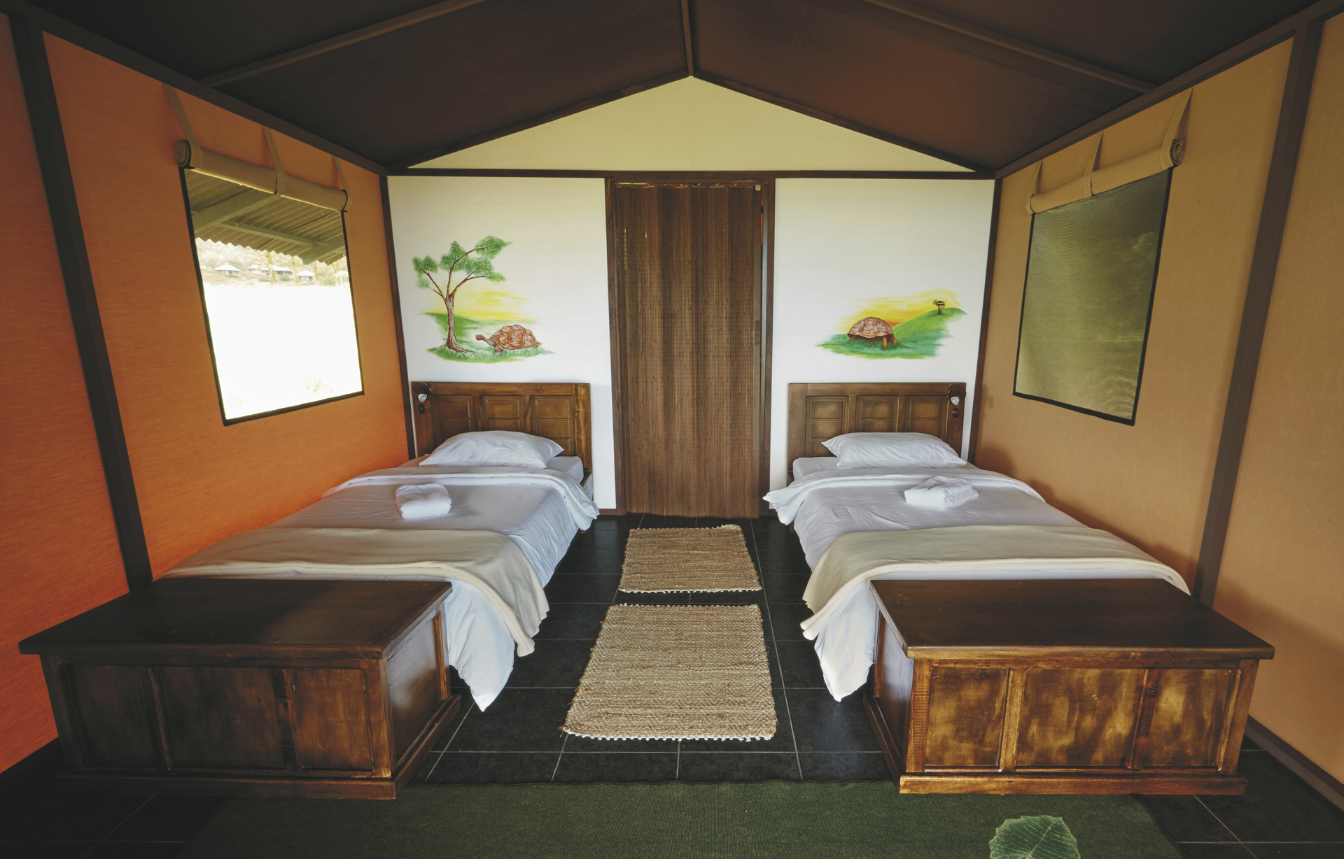 Die rustikalen Zelte machen den Aufenthalt zu einem Erlebnis mit allen Sinnen. Die Suites sind etwas komfortabler und das Baumhaus etwas ganz besonderes. Alle Zimmer haben ein eigenes Bad.