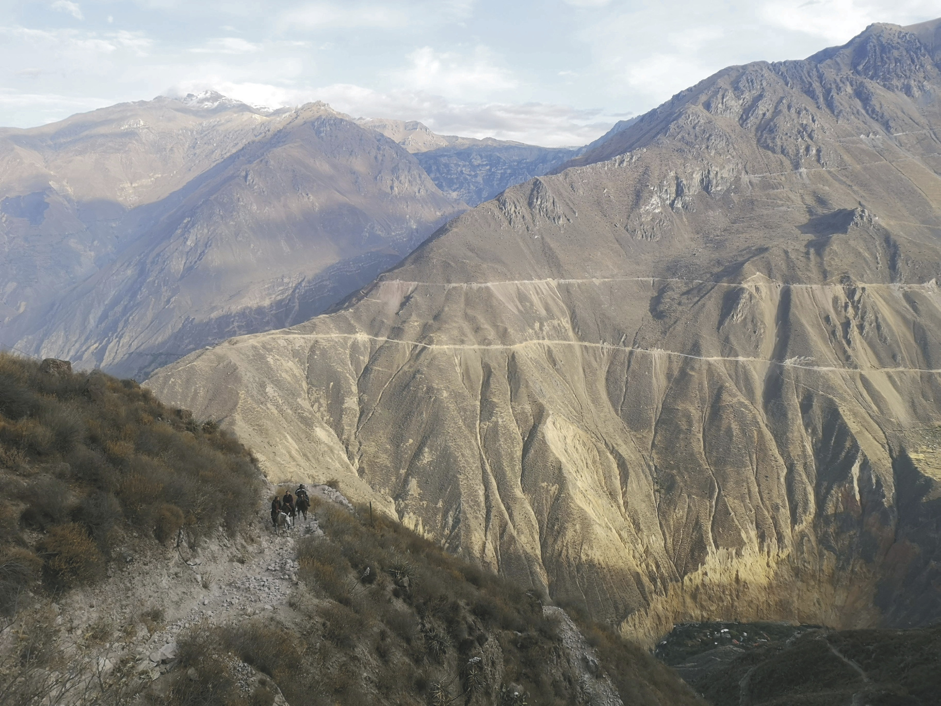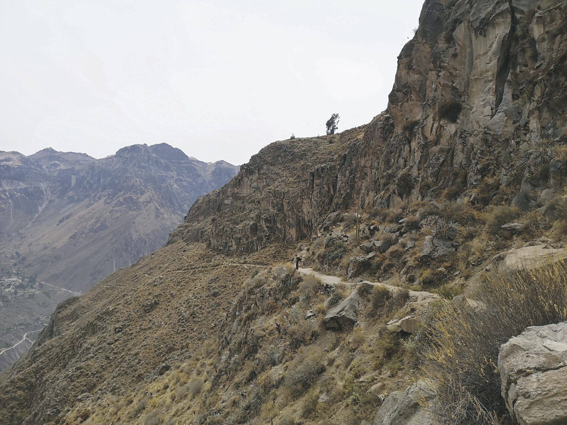 Arequipa - Colca - San Juan de Chuccho (M/A).Am frühen Morgen werden Sie an Ihrem Hotel in Arequipa abgeholt und fahren ins Colca Tal (ca. 5 Stunden). Ihre erstes Ziel ist der Aussichtspunkt Cruz del Condor (3.800 m), wo Sie mit etwas Glück Kondore beobachten können, die im Aufwind ihre Kreise drehen. Weiter geht es nach Cabanaconde, wo Ihre Wanderung hinab in den Colca Canyon beginnt. Der Wanderweg verläuft am Hang entlang 1.000 Höhenmeter in die Tiefe bis zum Colca Fluss. Die Vegetation hat sich verändert, denn hier finden sich plötzlich Apfel- und Avocadobäume, die in den tieferen Lage bestens gedeihen (9 km, Gehzeit 3,5-4 Std., 100 Hm auf, 1.100 Hm ab).