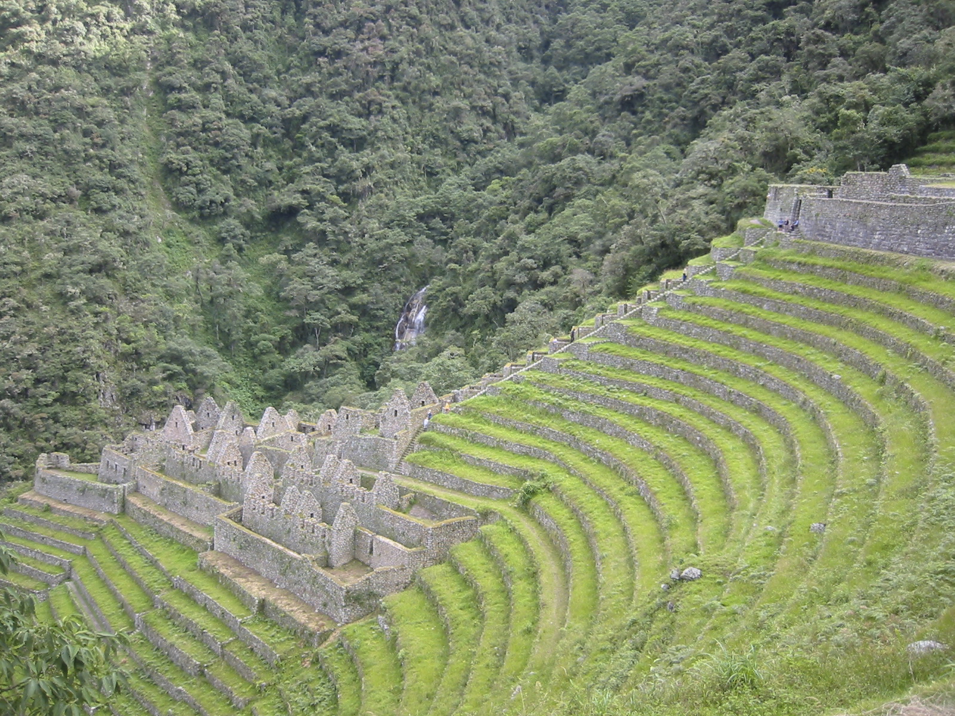 Inka Trail (F/M/A).Vorbei an den Ruinen von Runkuracay wandern Sie über einen Pass auf 3.900 Meter Höhe mit eindrucksvollen Panoramen auf schneebedeckte Berggipfel. Weiter bergab erreichen Sie die Ruinen von Sayacamarca und die Stätte Puyupatamarca (Stadt über den Wolken). Der Blick schweift hier über die Täler des Urubamba und die Terrassen von Intipata. Der Weg hinab nach Winayhuayna führt durch Nebelwald über alte Inkastufen (16 km, Gehzeit 8-9 Std., max. Höhe 3.900 m).