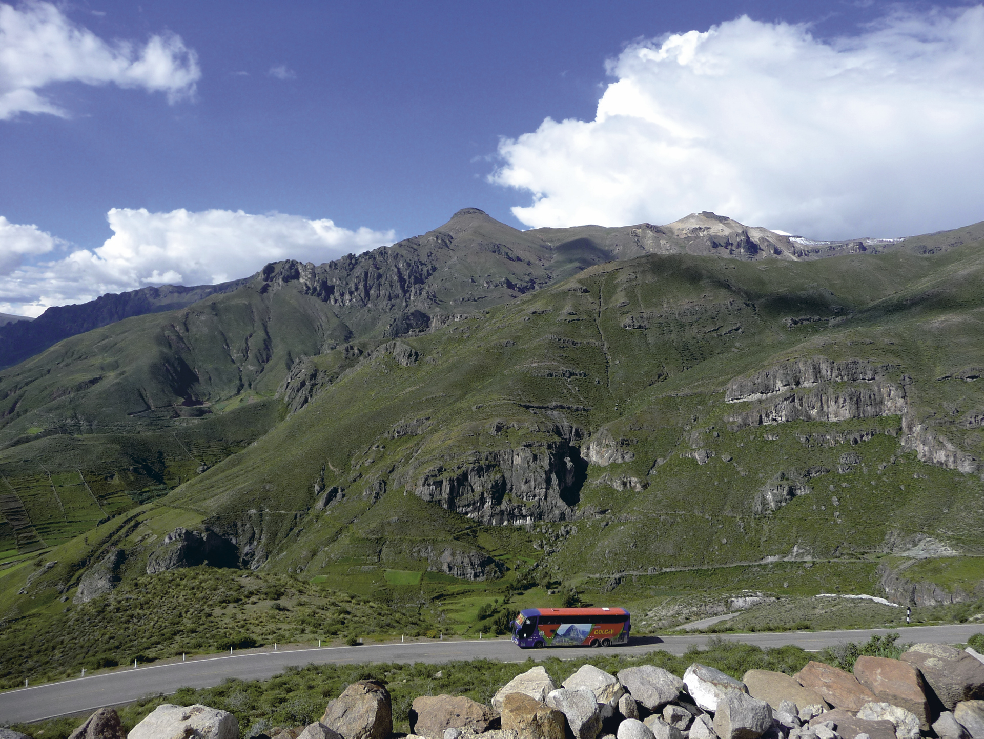 Arequipa – Colca (F).Nach dem Frühstück verlassen Sie Arequipa und fahren durch viele kleine Dörfer in Richtung Colca Tal, einem Gebiet mit einer beeindruckenden Landschaft. Genießen Sie während der Fahrt herrliche Ausblicke auf die umliegenden Bergketten mit bis zu 6.300 Meter hohen Gipfeln. Nach 4 Stunden Fahrt erreichen Sie Chivay, den Hauptort des Colca Tals, wo Sie den lokalen Markt besuchen. Lassen Sie den Tag entspannt in einem der warmen Thermalbecken ausklingen.