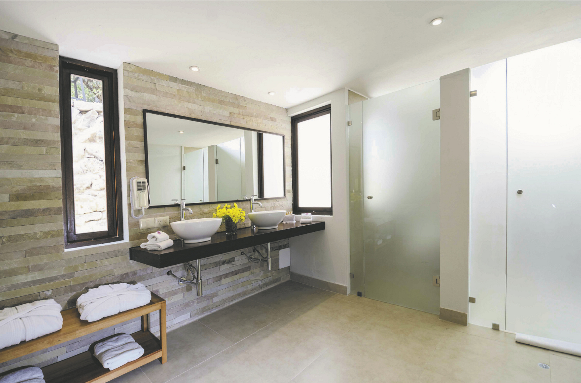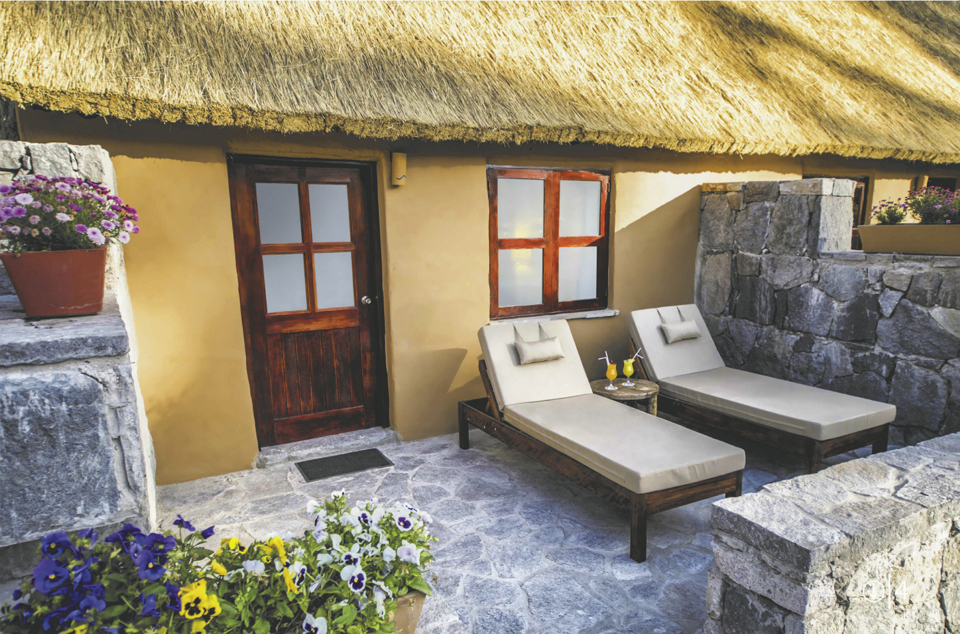 Insgesamt 45 Zimmer & Suiten verteilen sich auf dem Gelände. Die Standardzimmer sind rustikal, aber gemütlich eingerichtet und bieten Heizung, Safe, ein Bad mit DU/WC und eine kleine Terrasse. Die Adobe Junior Suiten sind moderner und geräumiger.