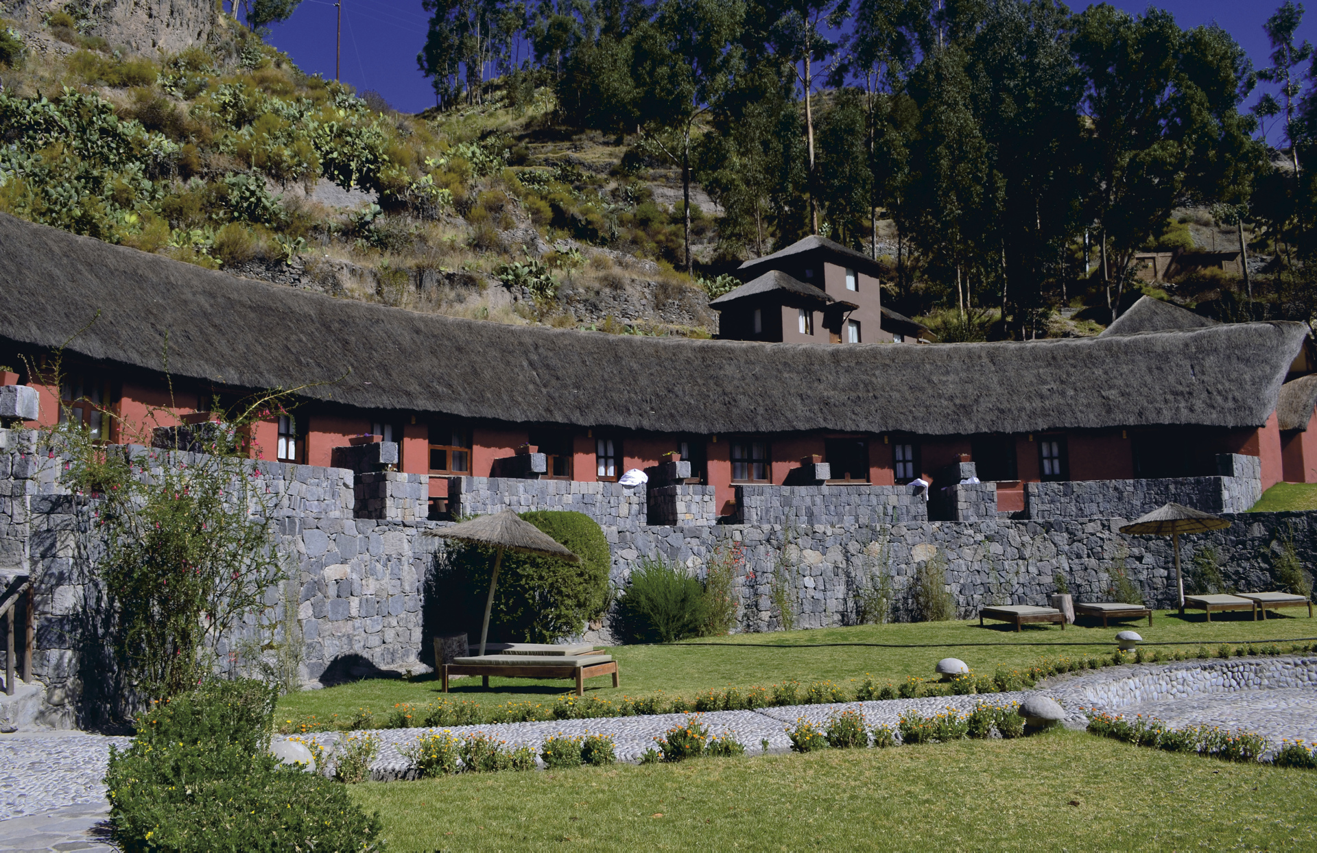 Direkt am Colca Fluss in einem weitläufigen Gartengelände mit herrlichem Blick auf den Fluss und die Berge.