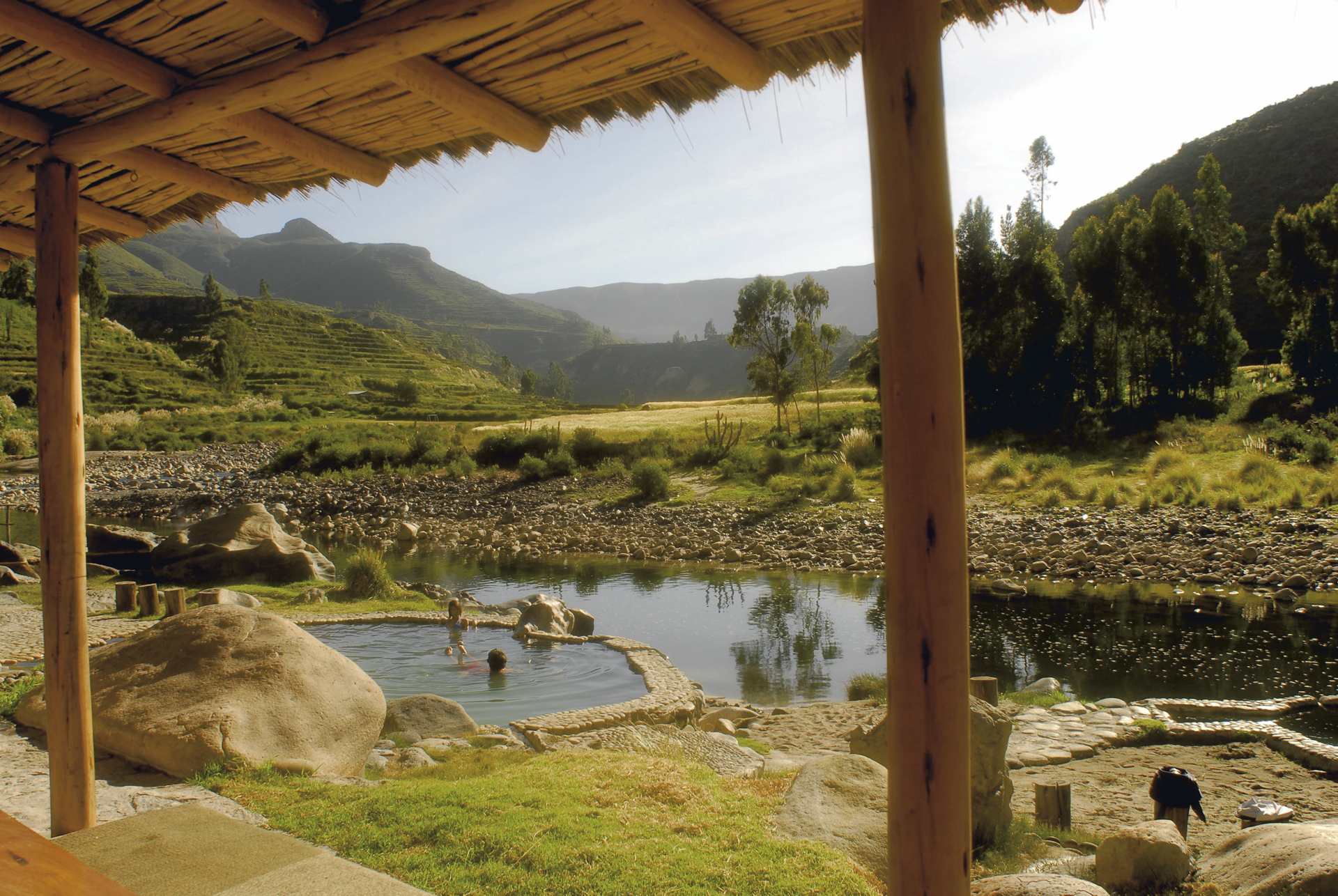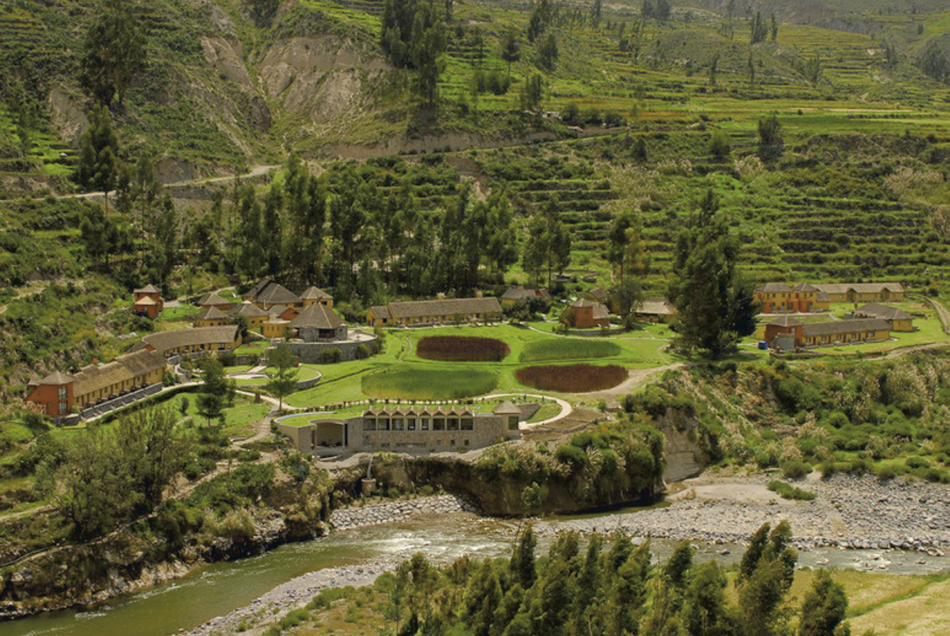 Herrlich gelegenes Hotel im Colca Tal mit Thermalpools am Fluss.