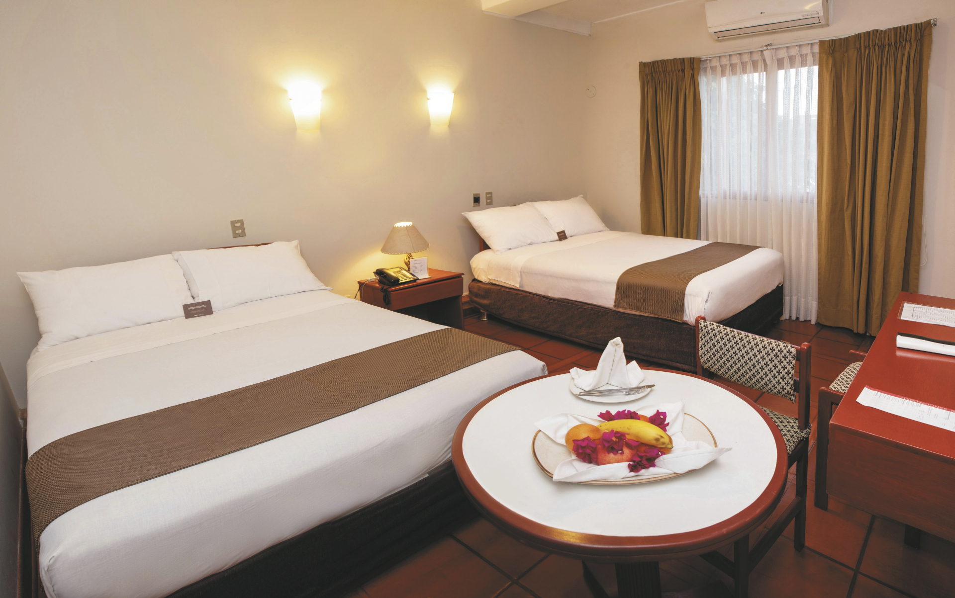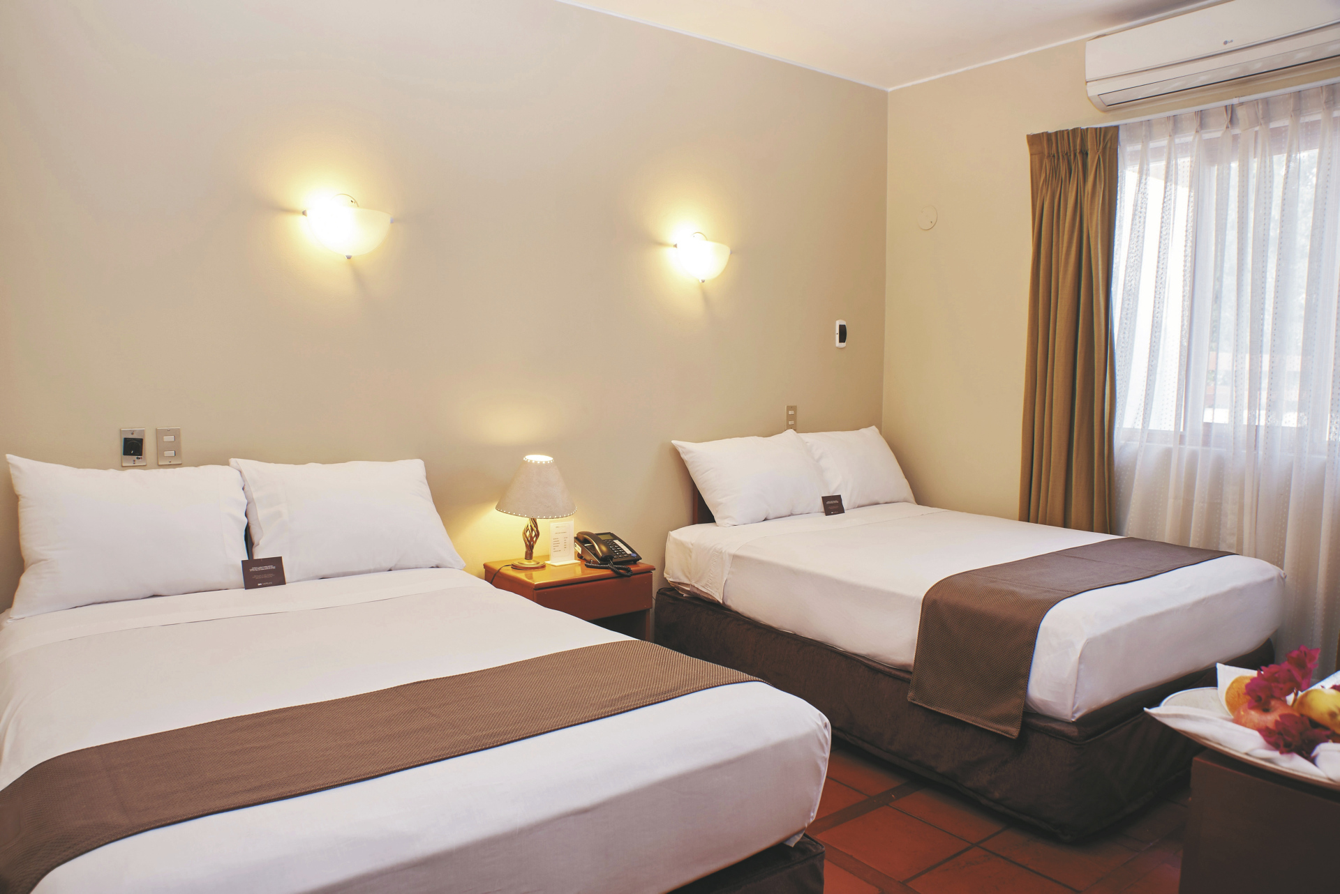 Die 78 Zimmer sind zweckmäßig eingerichtet und verfügen über Telefon, Safe, Minibar, TV, Klimaanlage, Fliesenboden, WLAN ein Bad mit DU/WC.