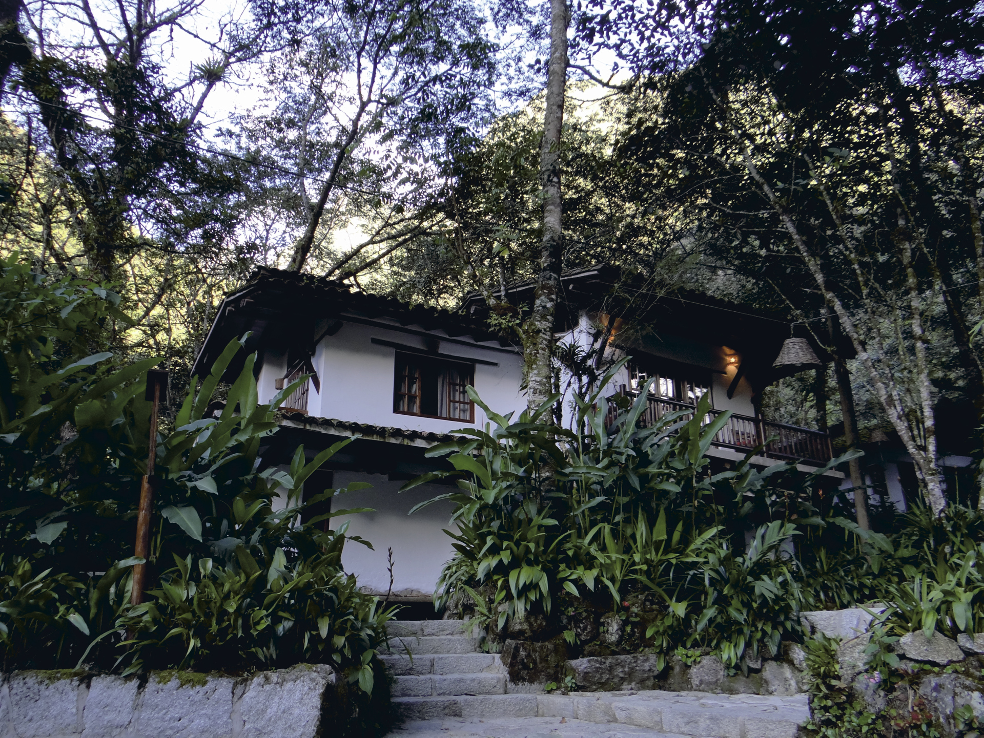 Mitten in einem tropischen Garten am Rand von Aguas Calientes, in Laufreichweite des Bahnhofs und der Bushaltestelle für die Shuttlebusse nach Machu Picchu.