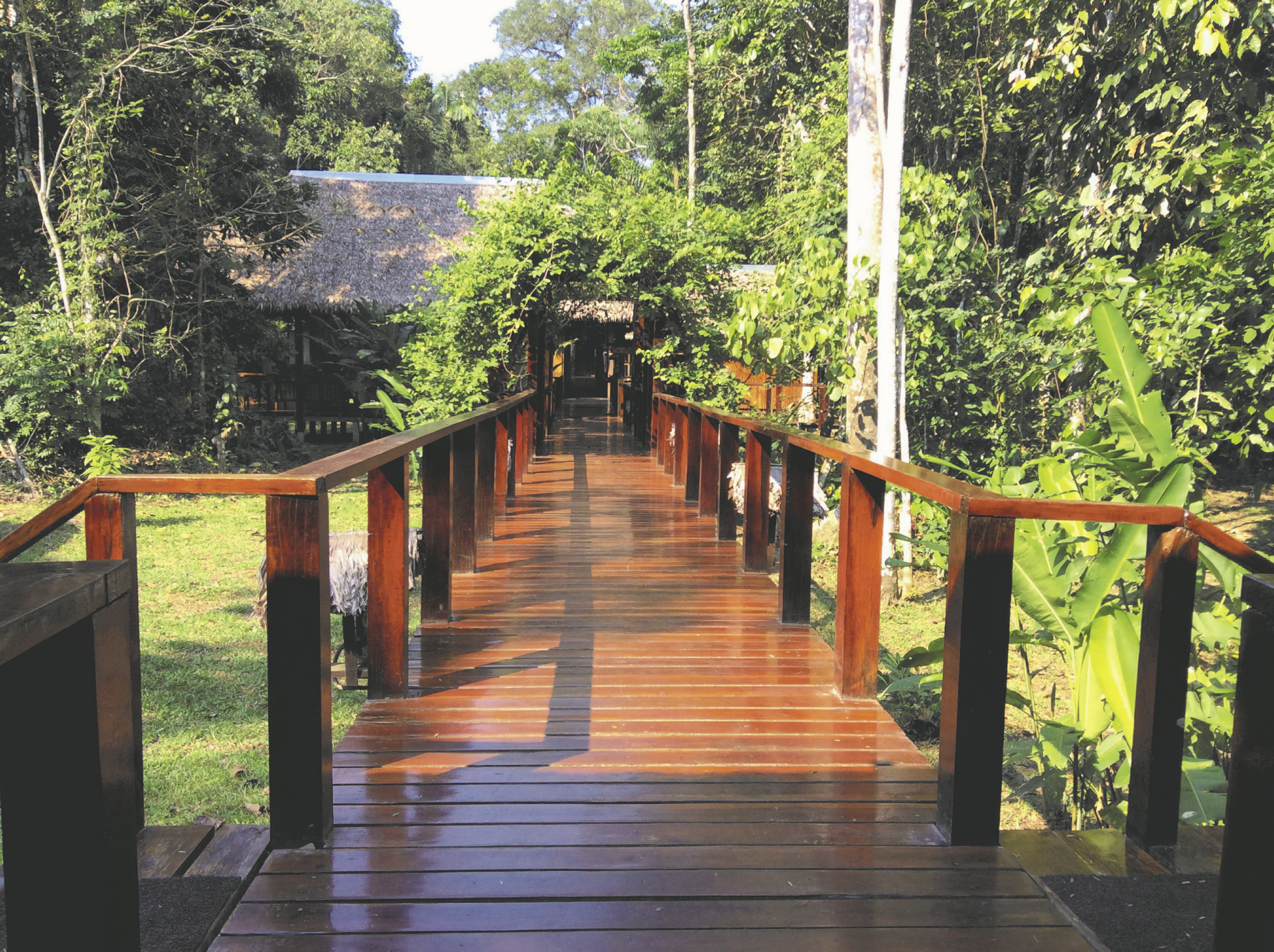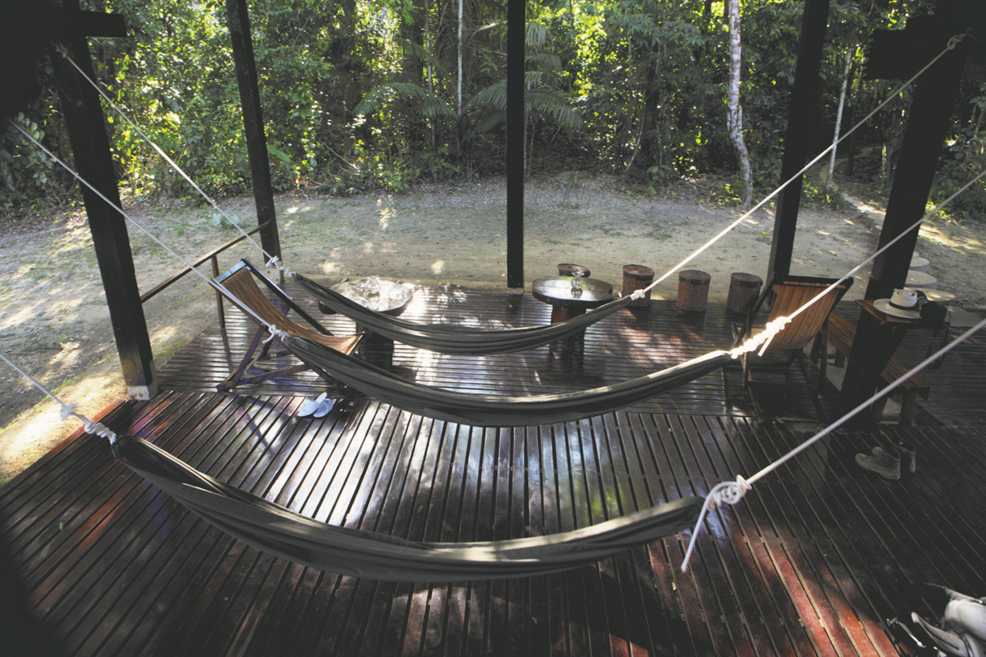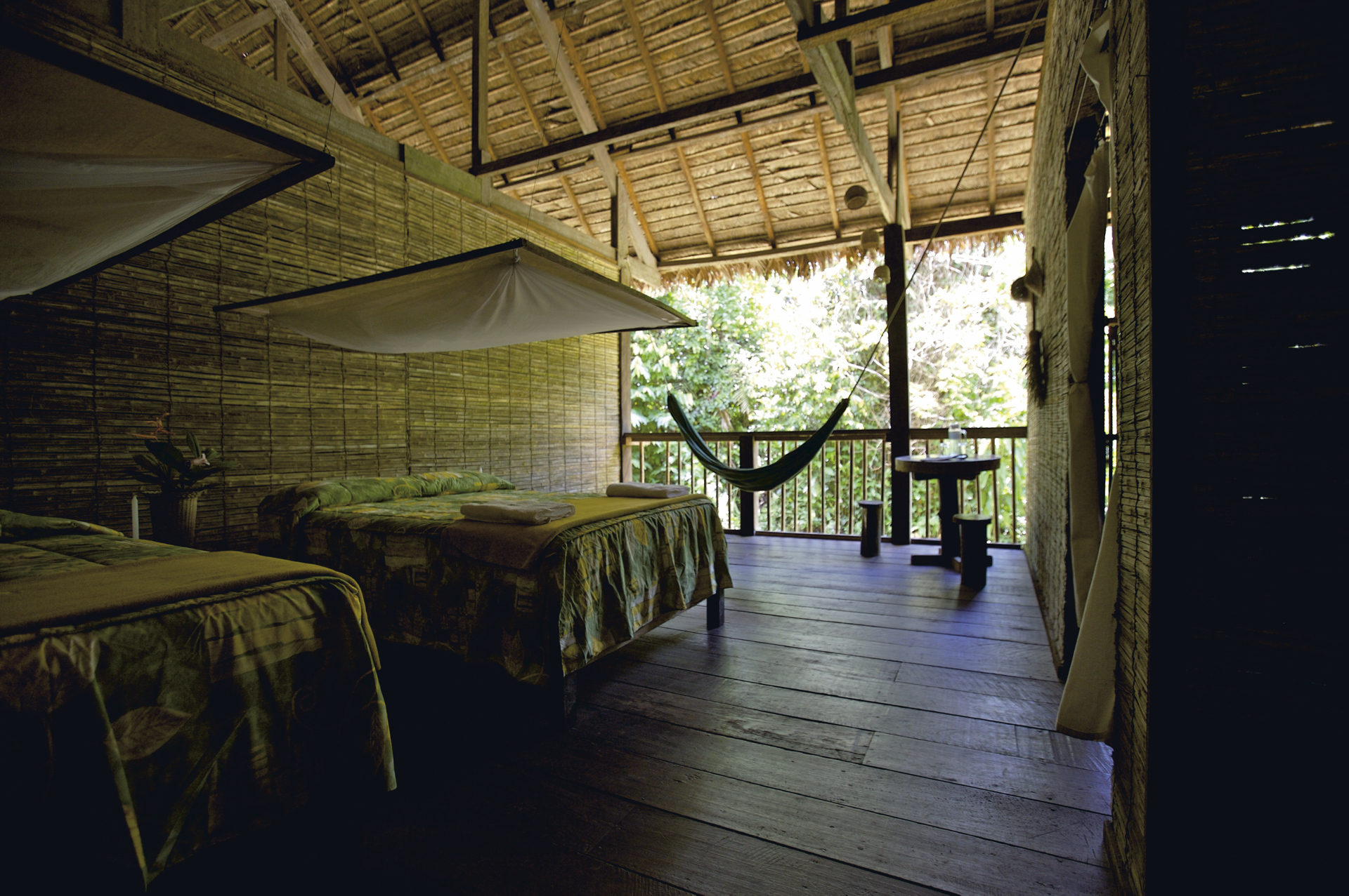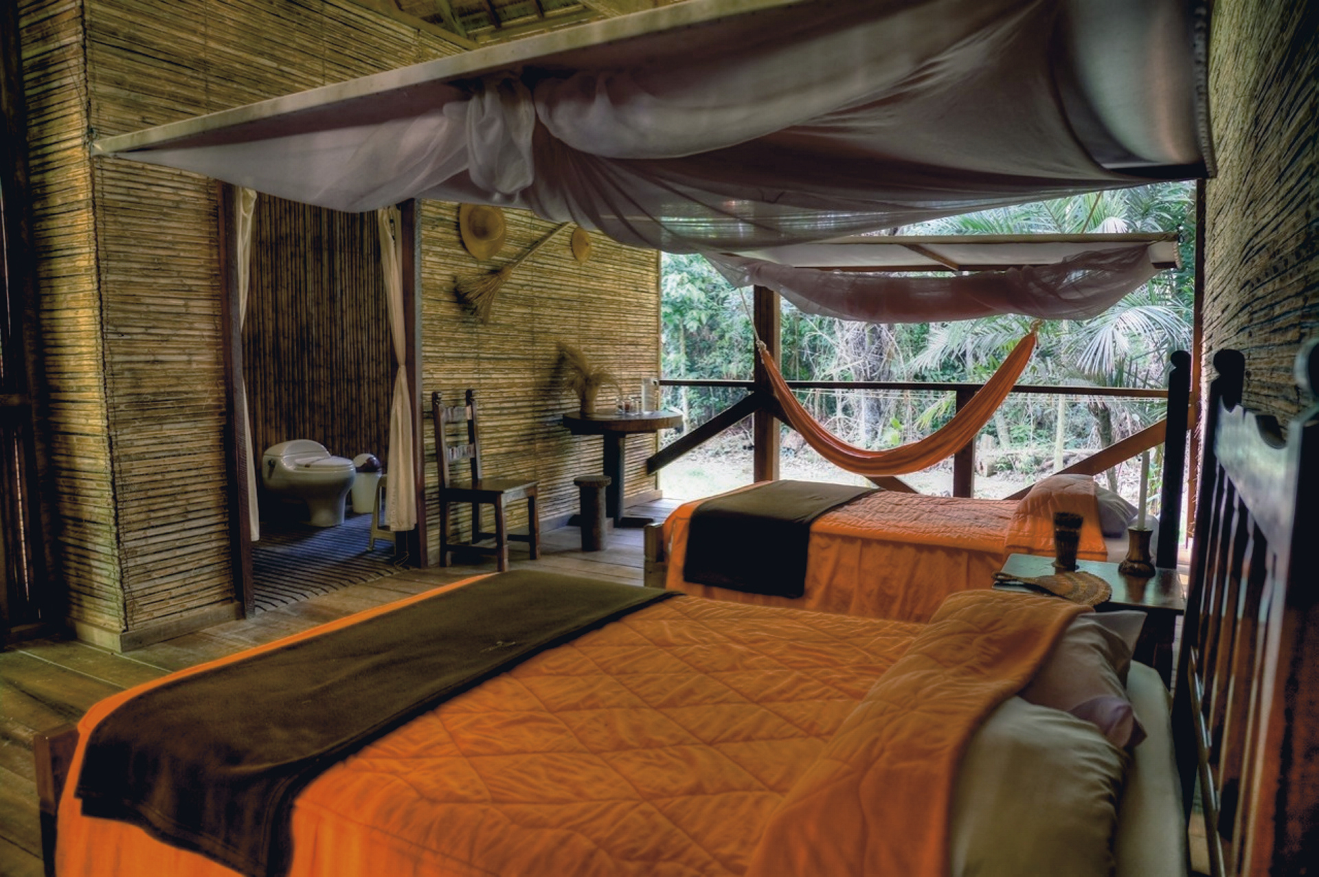 Die 30 Zimmer haben zur Regenwaldseite keine Wand und nur eine Abtrennung zu den Nachbarzimmern. Sie verfügen über Moskitonetze, Hängematte, Safe, Bad mit DU/WC und 3x täglich Strom.