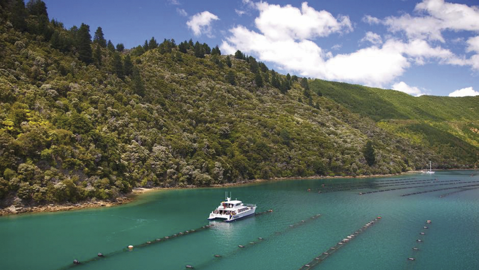 Die Marlborough Sounds eignen sich ideal für die Zucht und Aquakultur von Meerestieren jeglicher Art. Eine neuseeländische Spezialität sind die Greenshell-Muscheln, die weltweit exportiert werden.