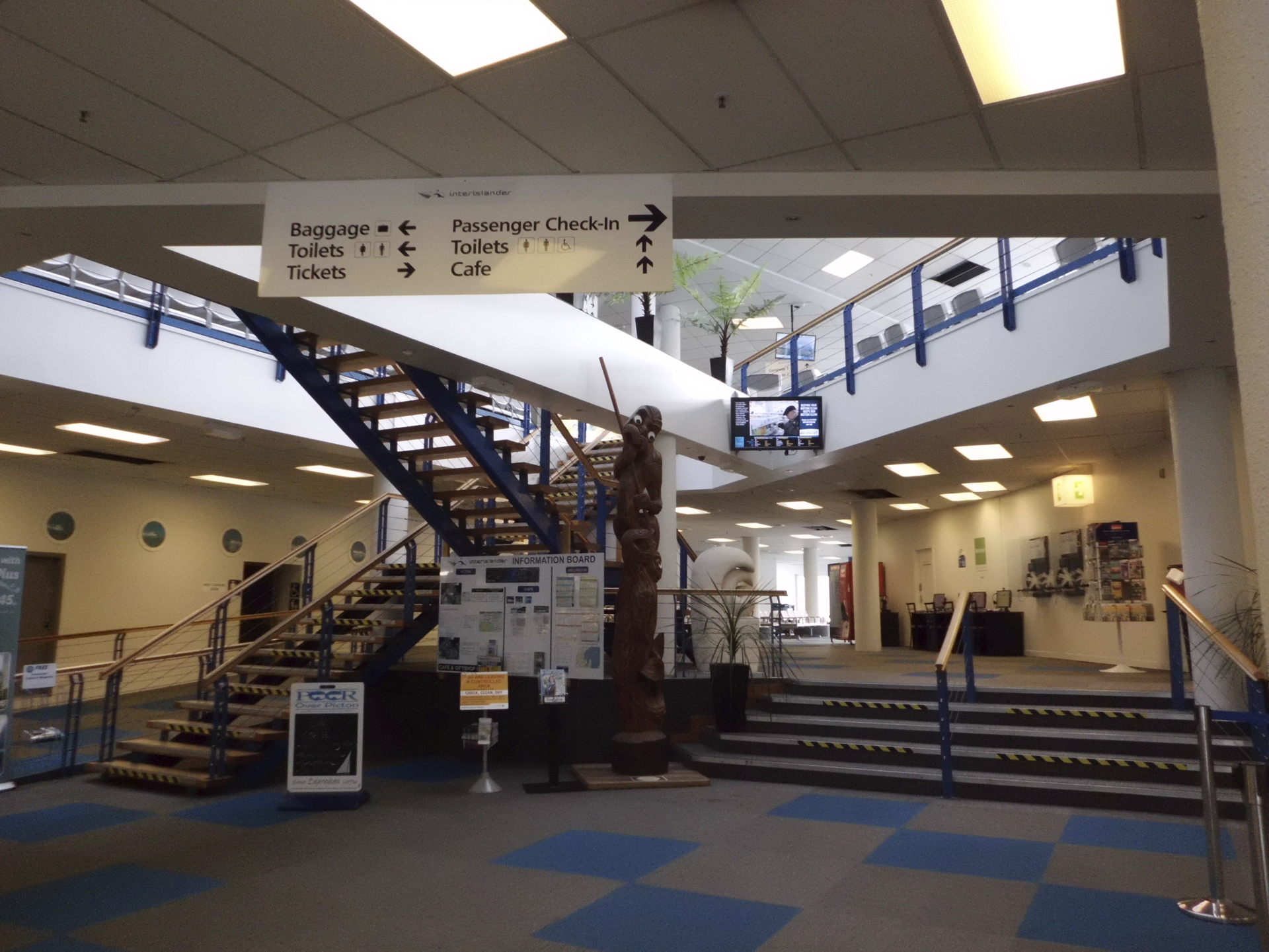nicht erlaubt in der Lounge.Fährzeiten ab Wellington: