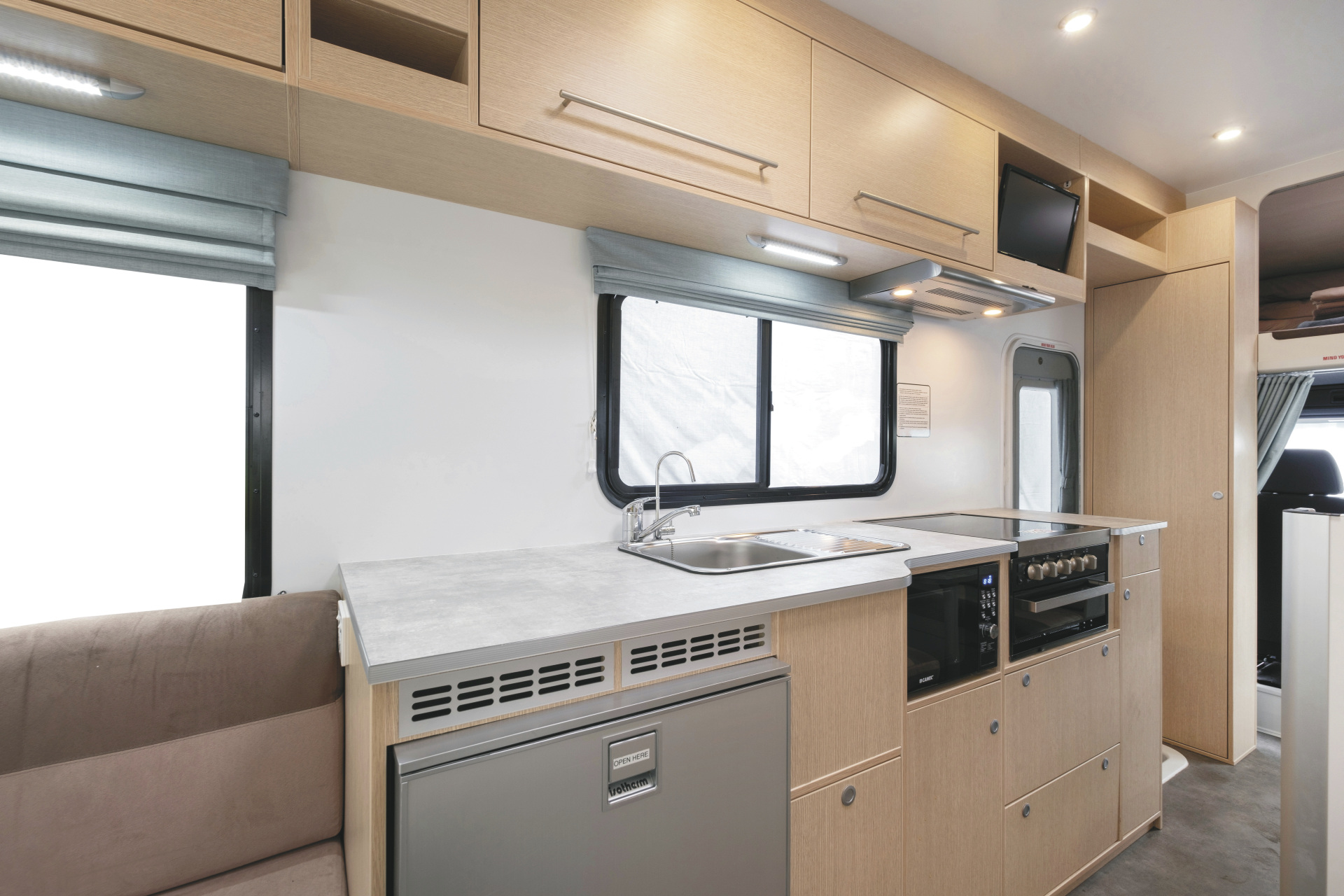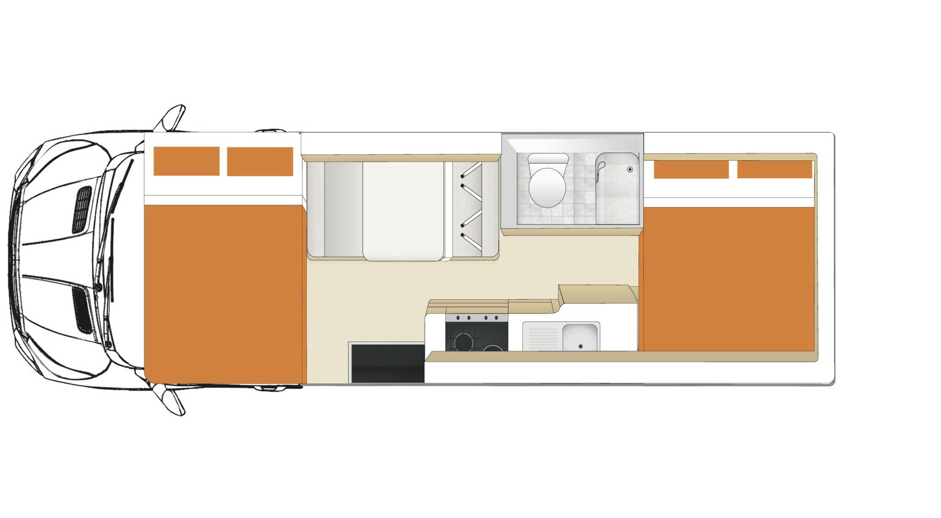 Ein komfortables Motorhome mit Küche und Sanitärraum. Ideal für 3-4 Personen.