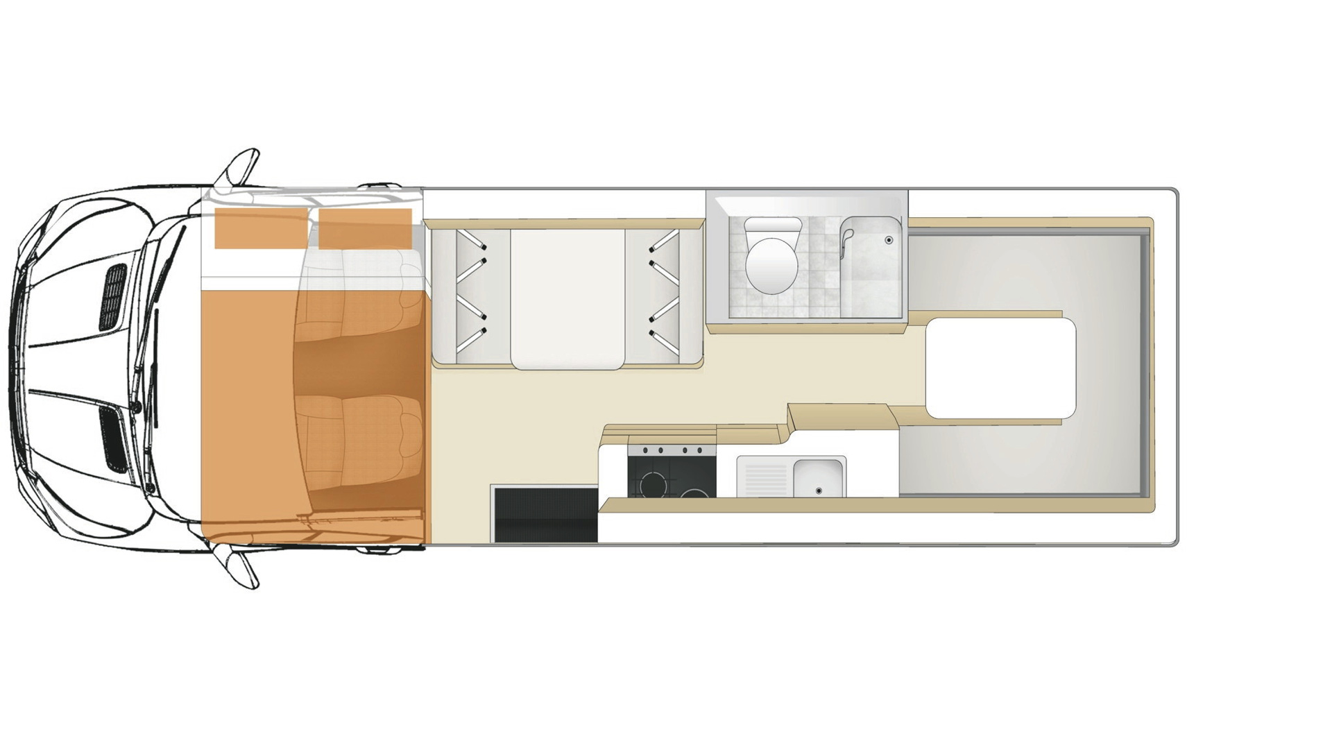 • 4 Sitzplätze im Wohnbereich hinter der Fahrerkabine