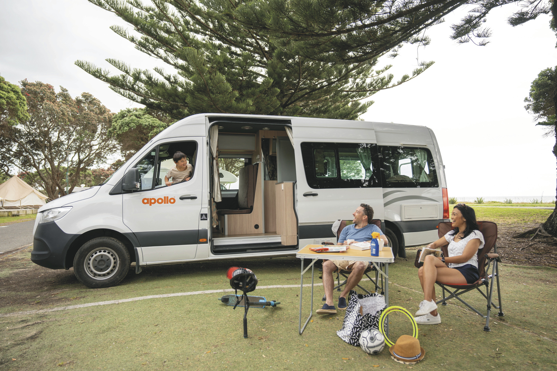 • RV Essential Kit (beinhaltet Campingtisch und -stühle, Baby-/Kindersitz (muss bei Fahrzeugbuchung bestellt werden), tragbarer Heizlüfter (240 V), 3 Sets WC-Chemikalien (für Camper mit Dusche/WC)