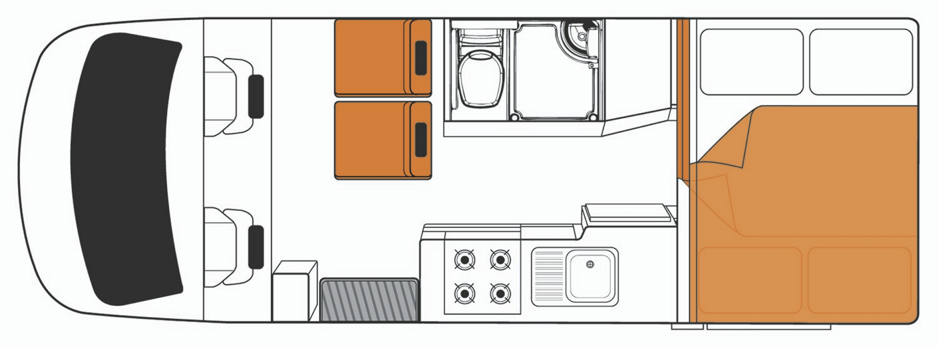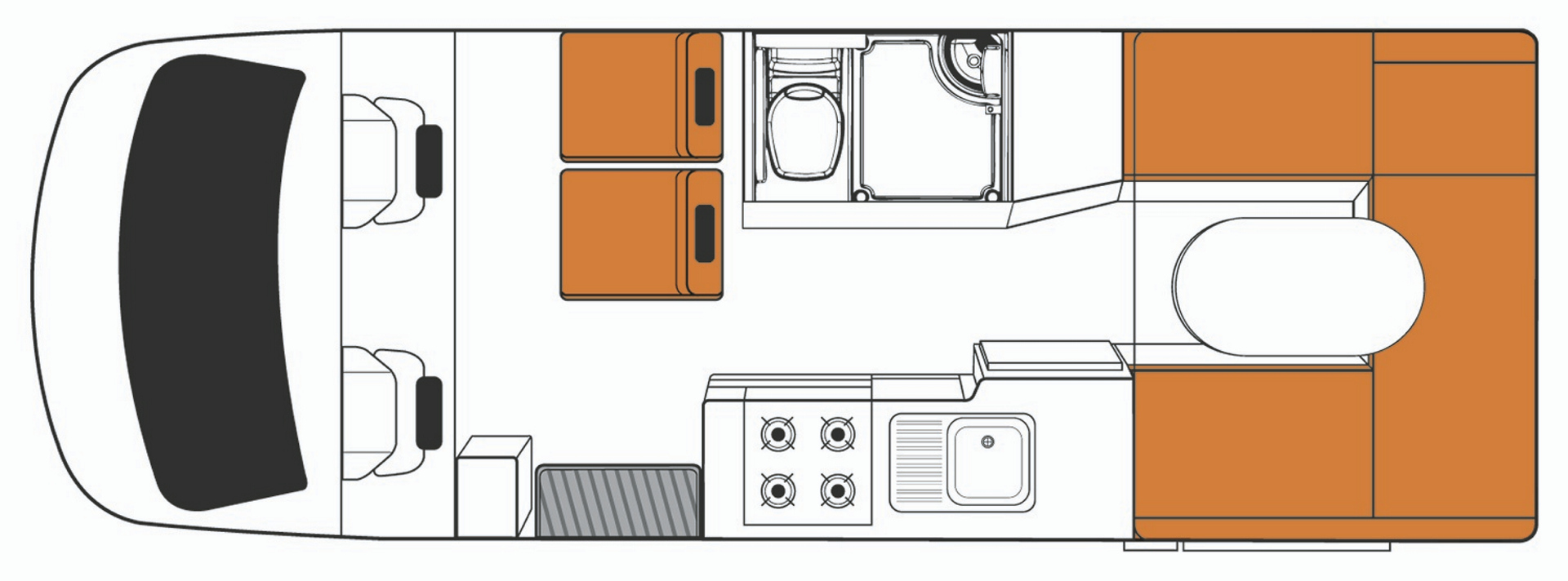 • 2 Sitzplätze im Wohnbereich hinter der Fahrerkabine