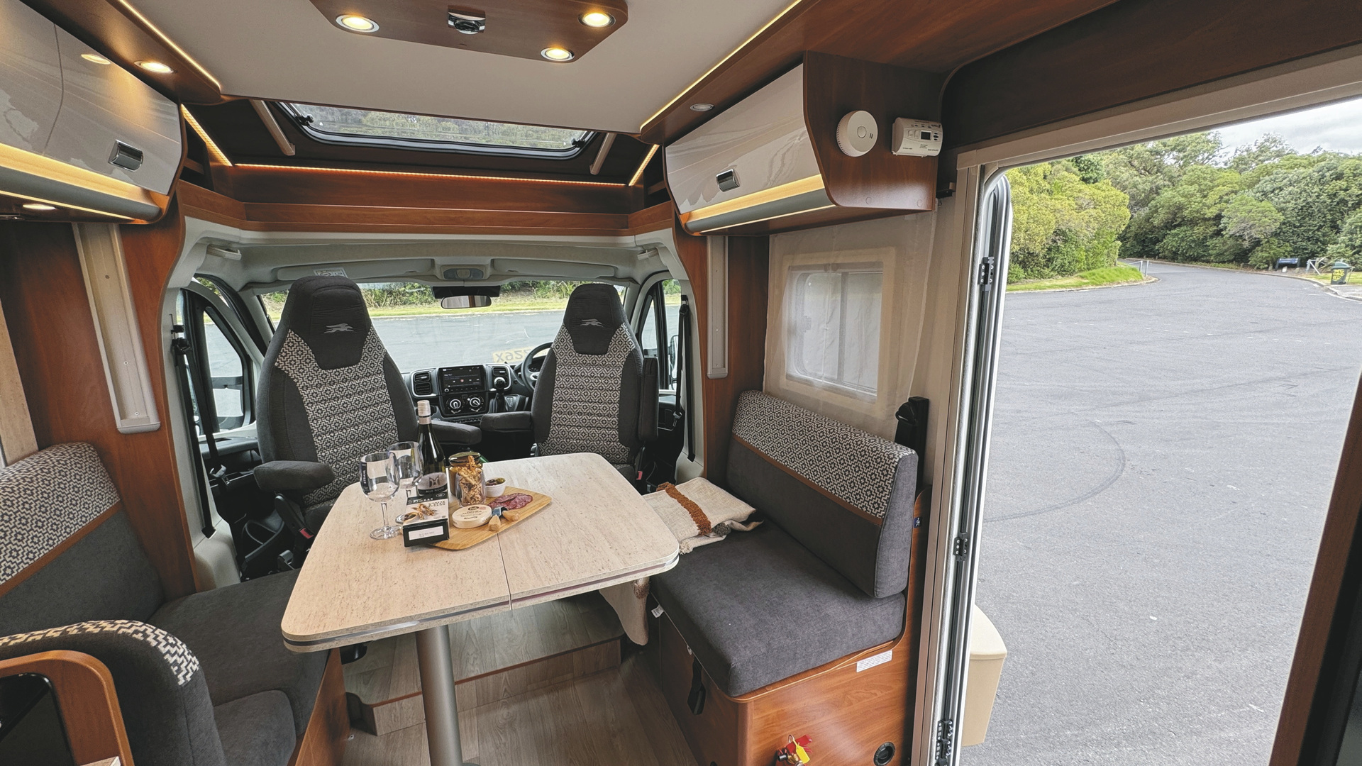 • 2 Sitzplätze in der Fahrerkabine (zum Wohnbereich drehbar)