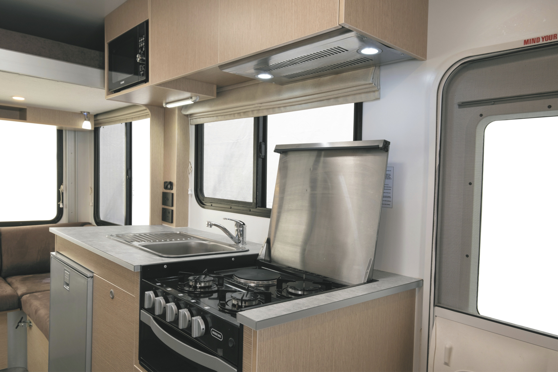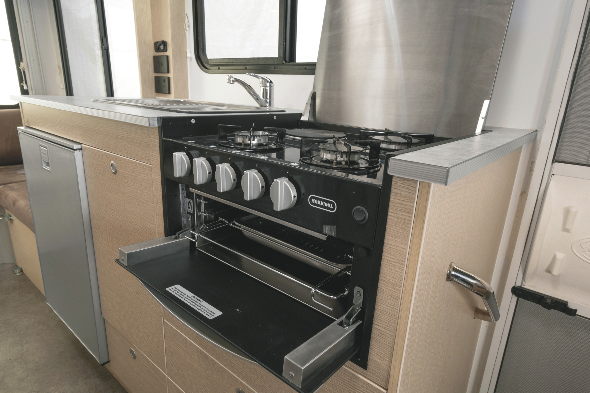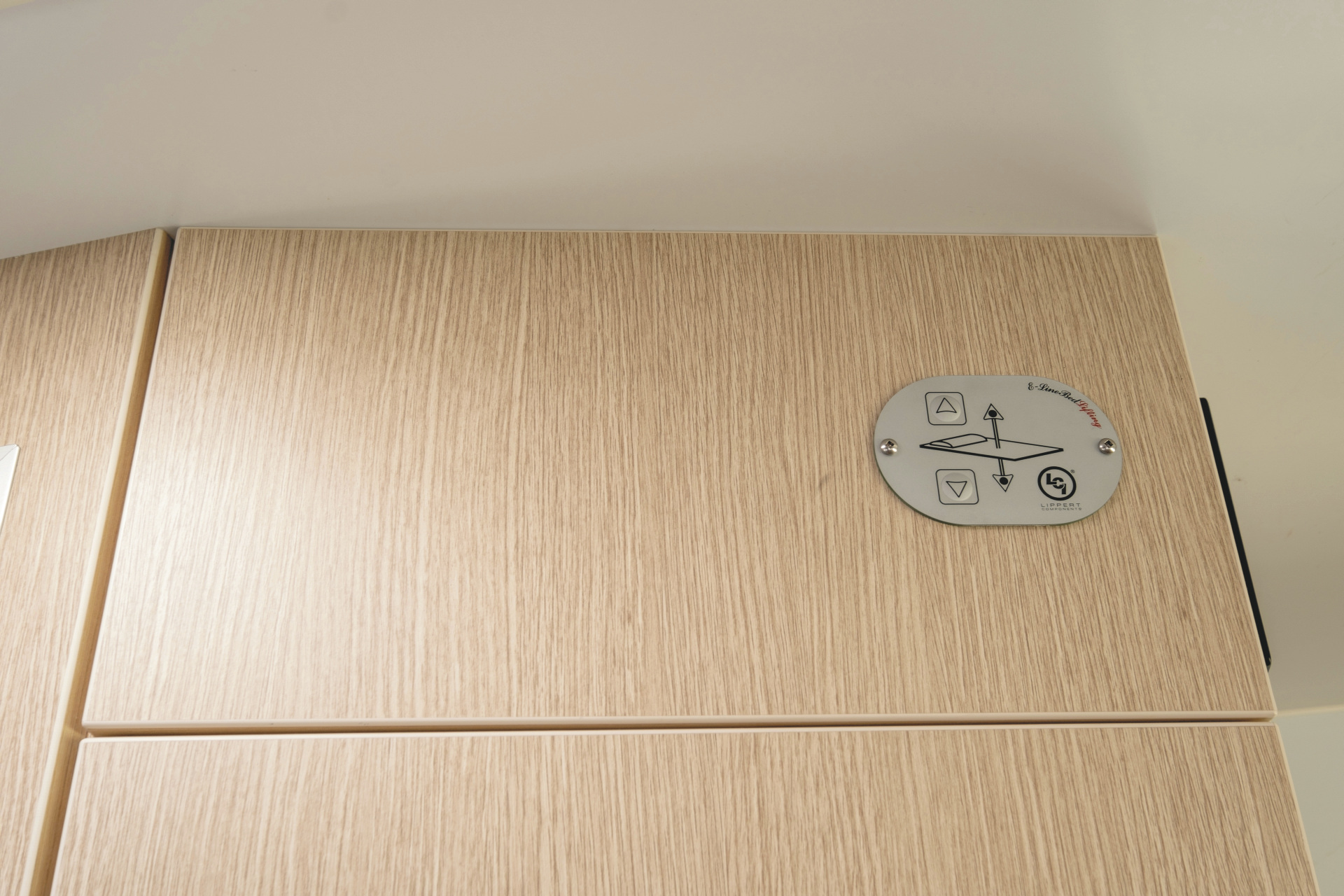 • Hecksitzgruppe, zum Doppelbett umbaubar 2,00 x 1,45 m• darüber, von der Fahrzeugdecke absenkbar, zweites Doppelbett 2,00 x 1,40 m