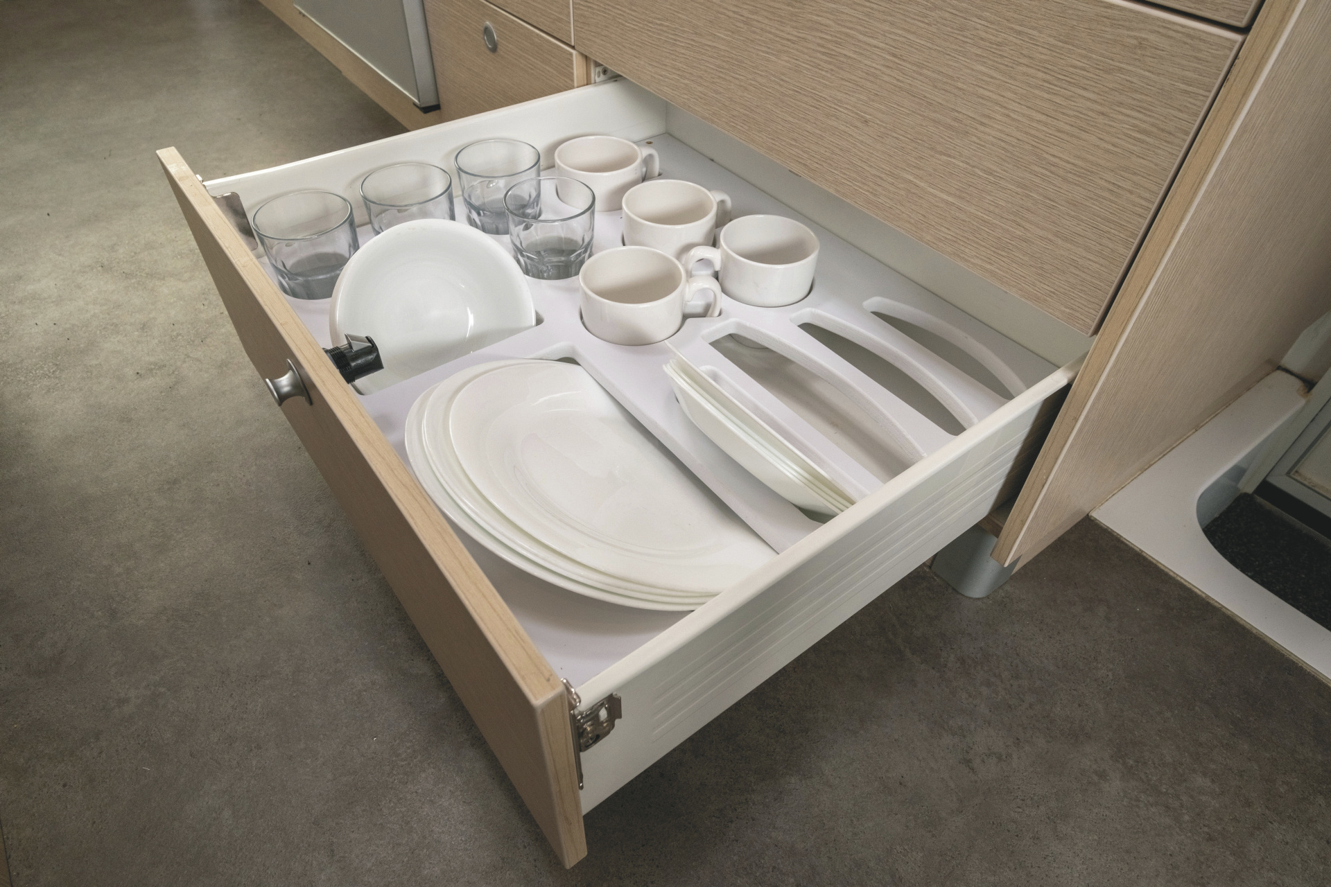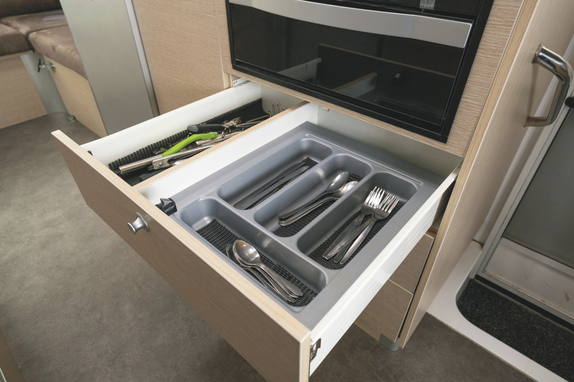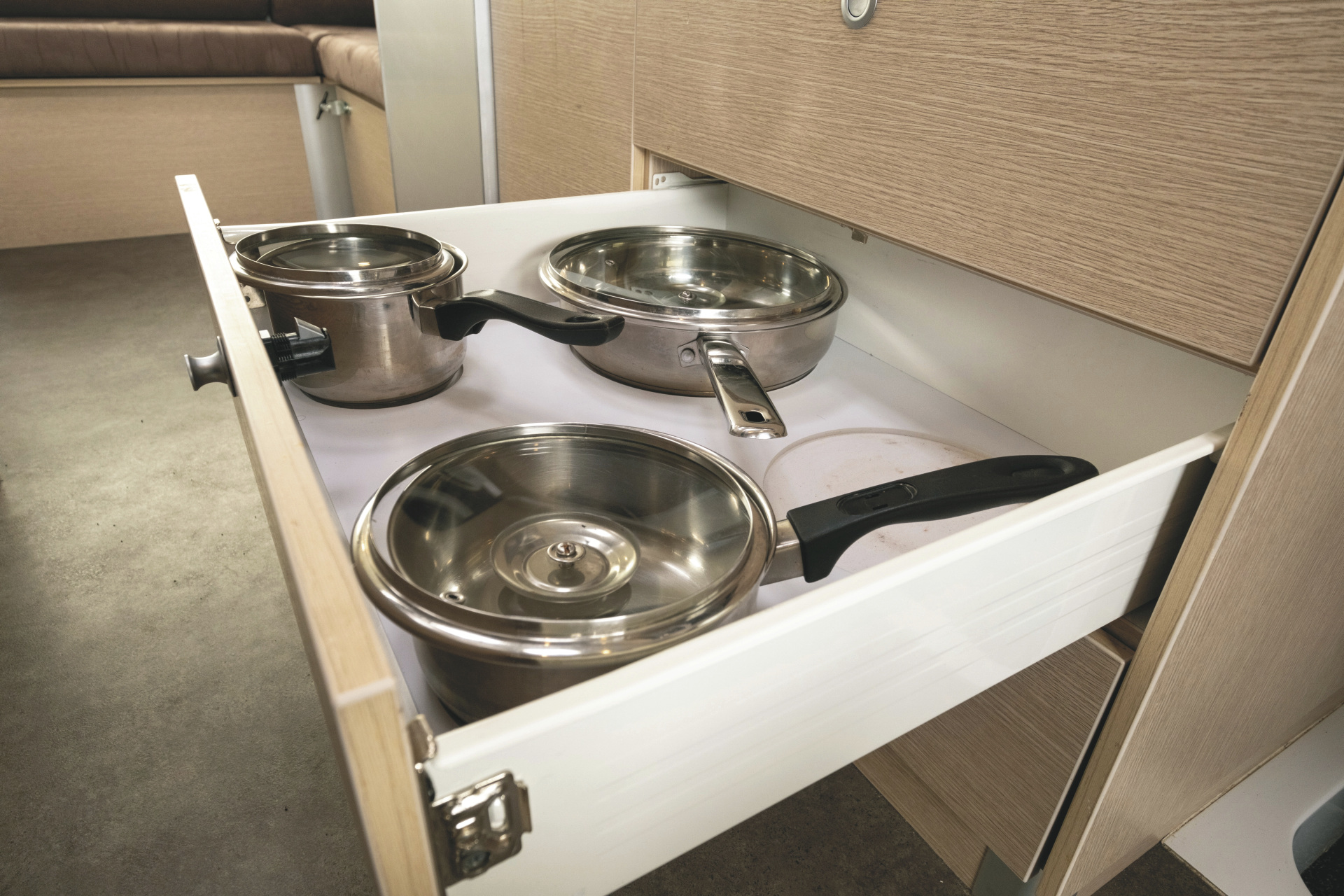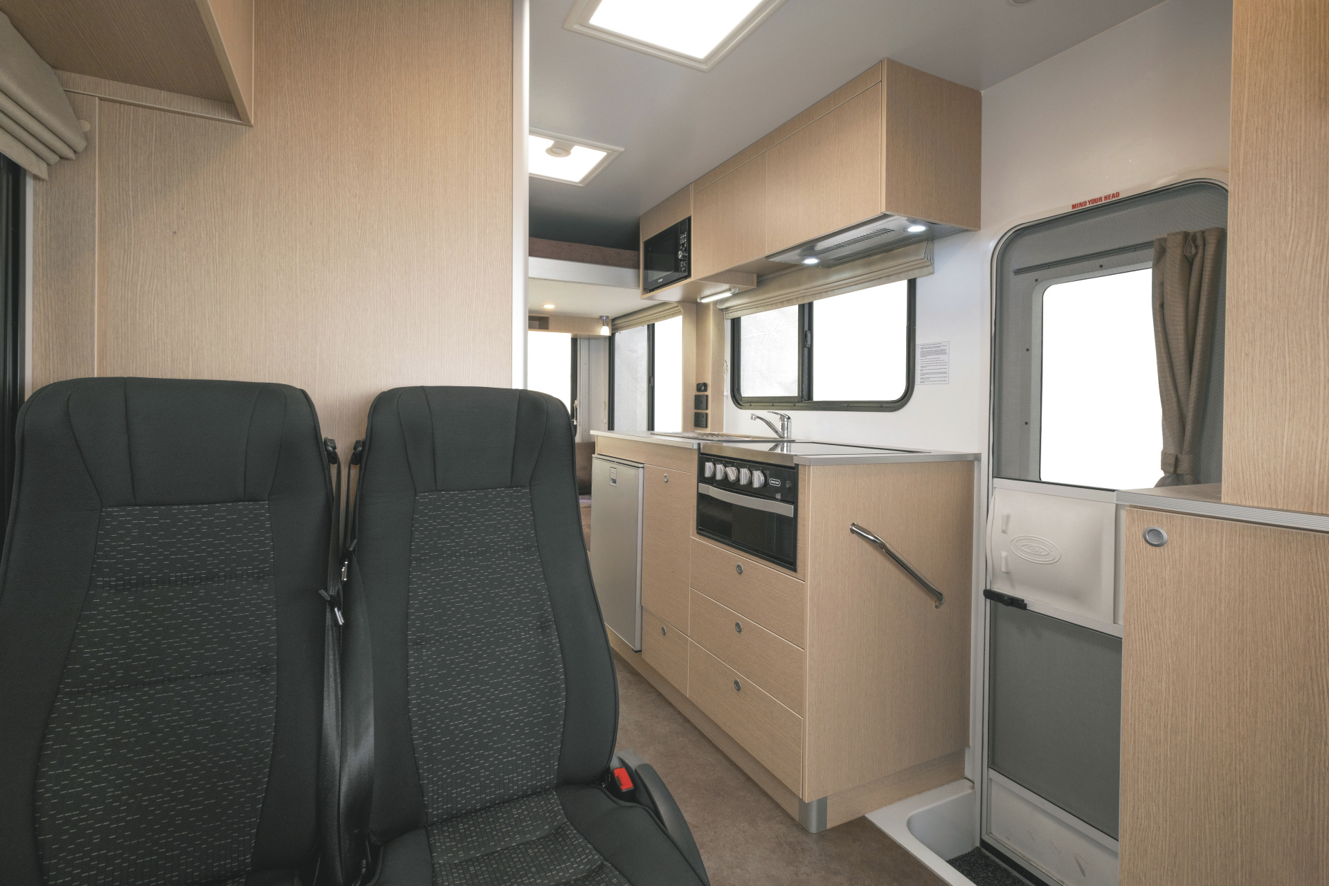 • 2 Sitzplätze in der Fahrerkabine (zum Wohnbereich drehbar)
