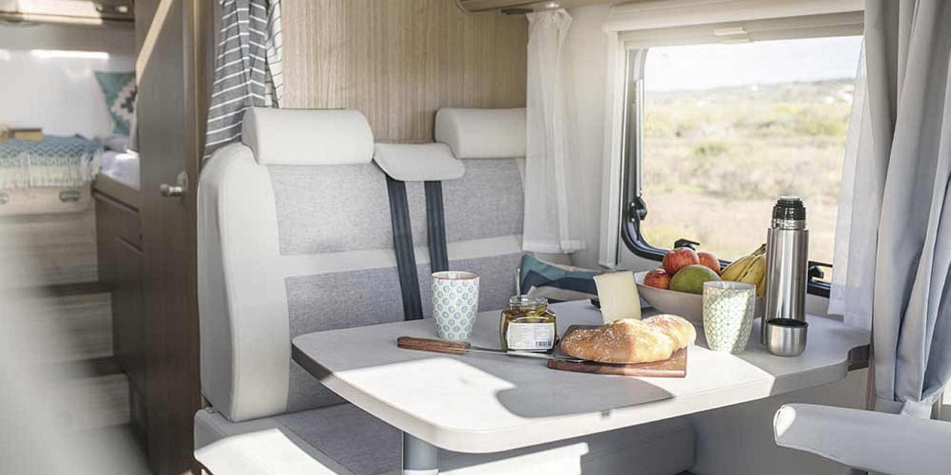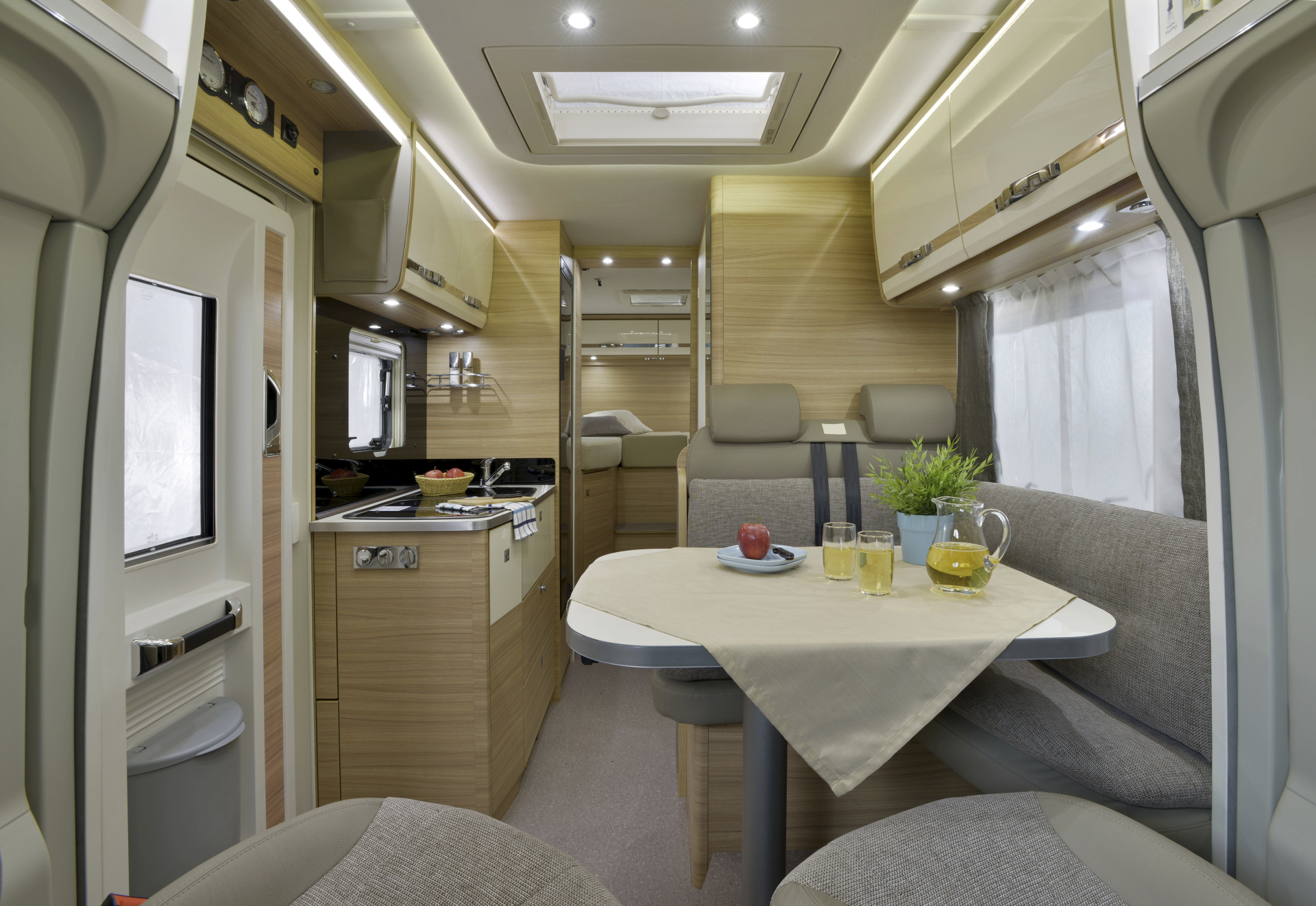• 2 Sitzplätze in der Fahrerkabine (zum Wohnbereich drehbar)