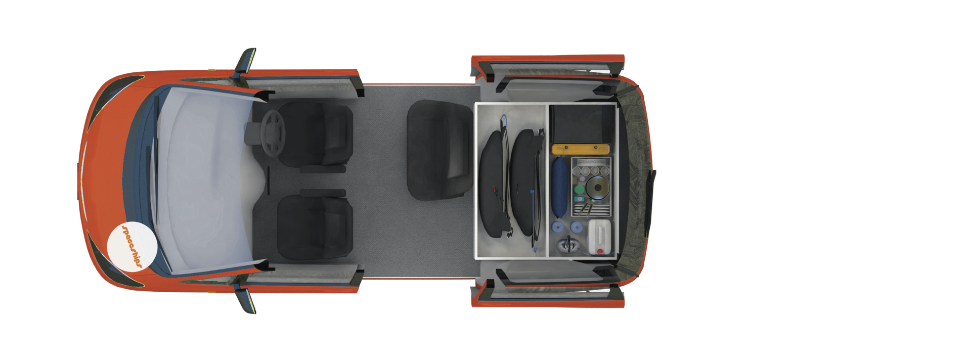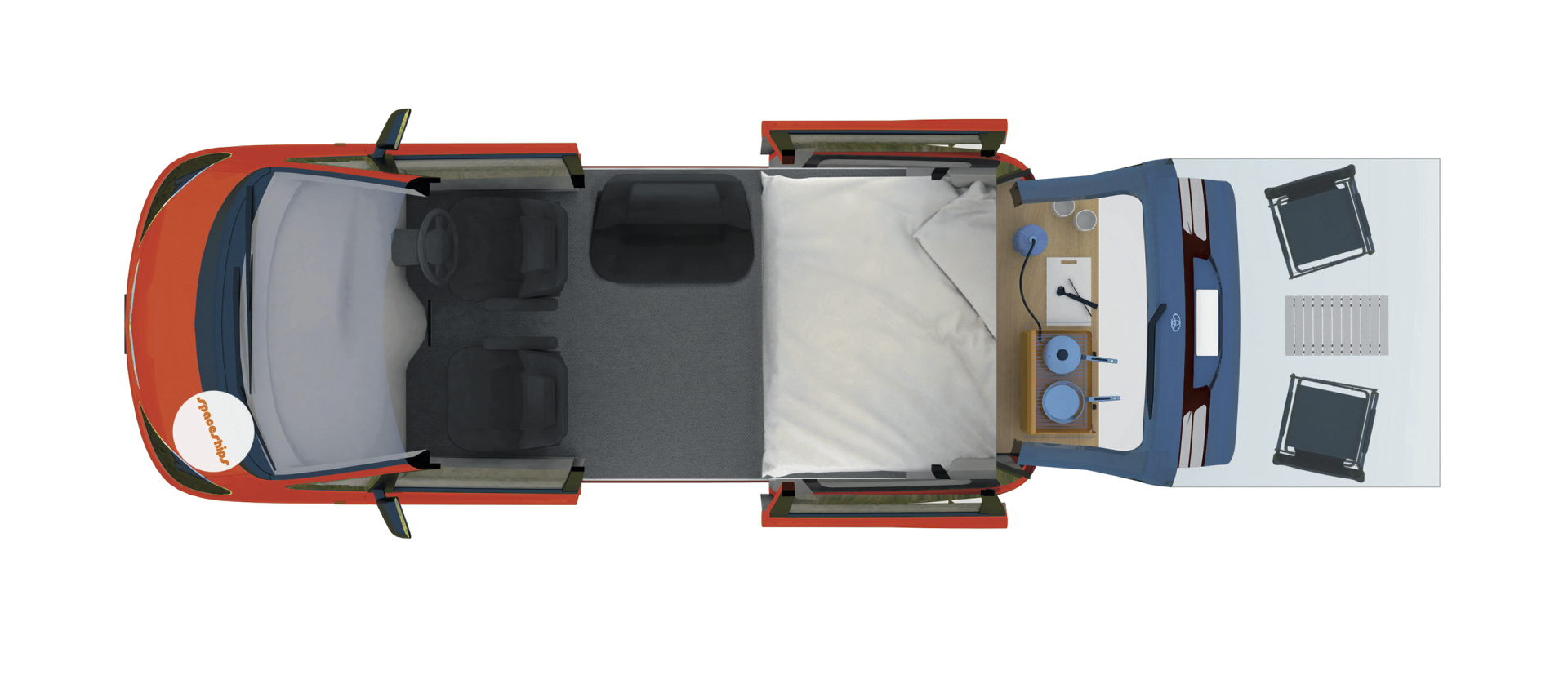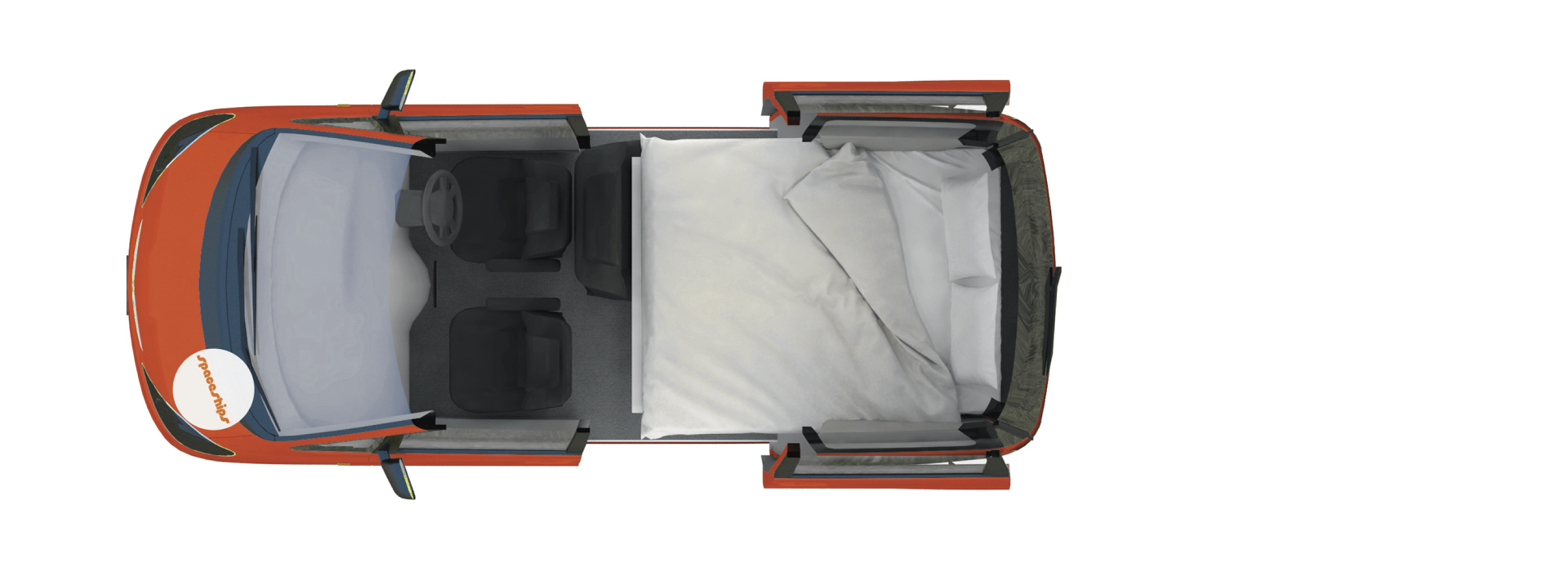 • Rückbank, zum Doppelbett umbaubar: 1,90 x 1,40 m(bei geöffneter Heckklappe: 2,30 x 1,40 m)