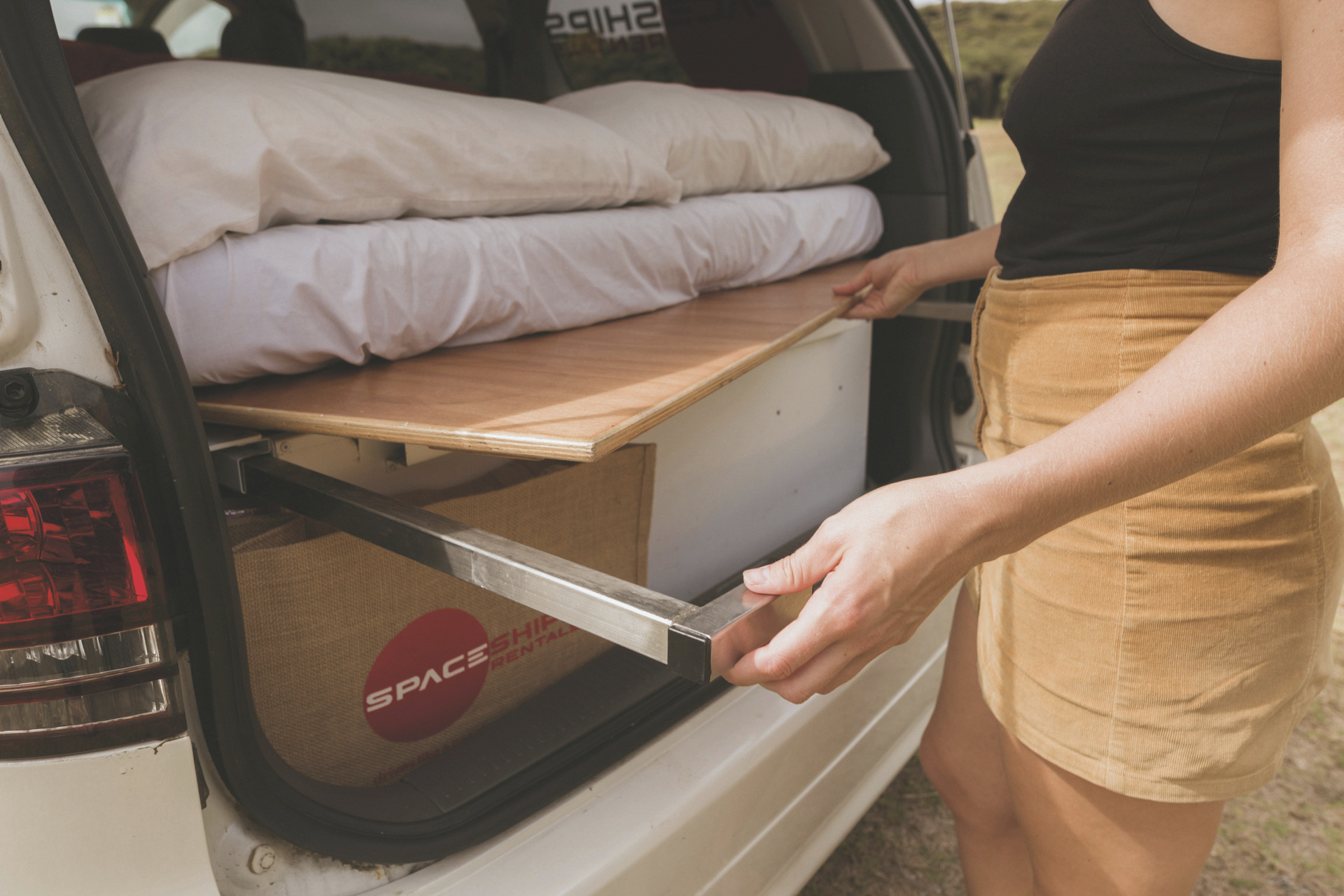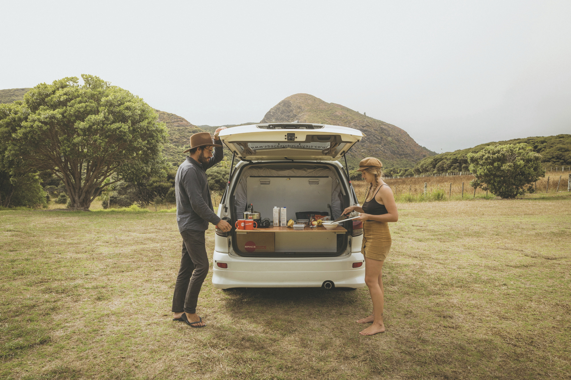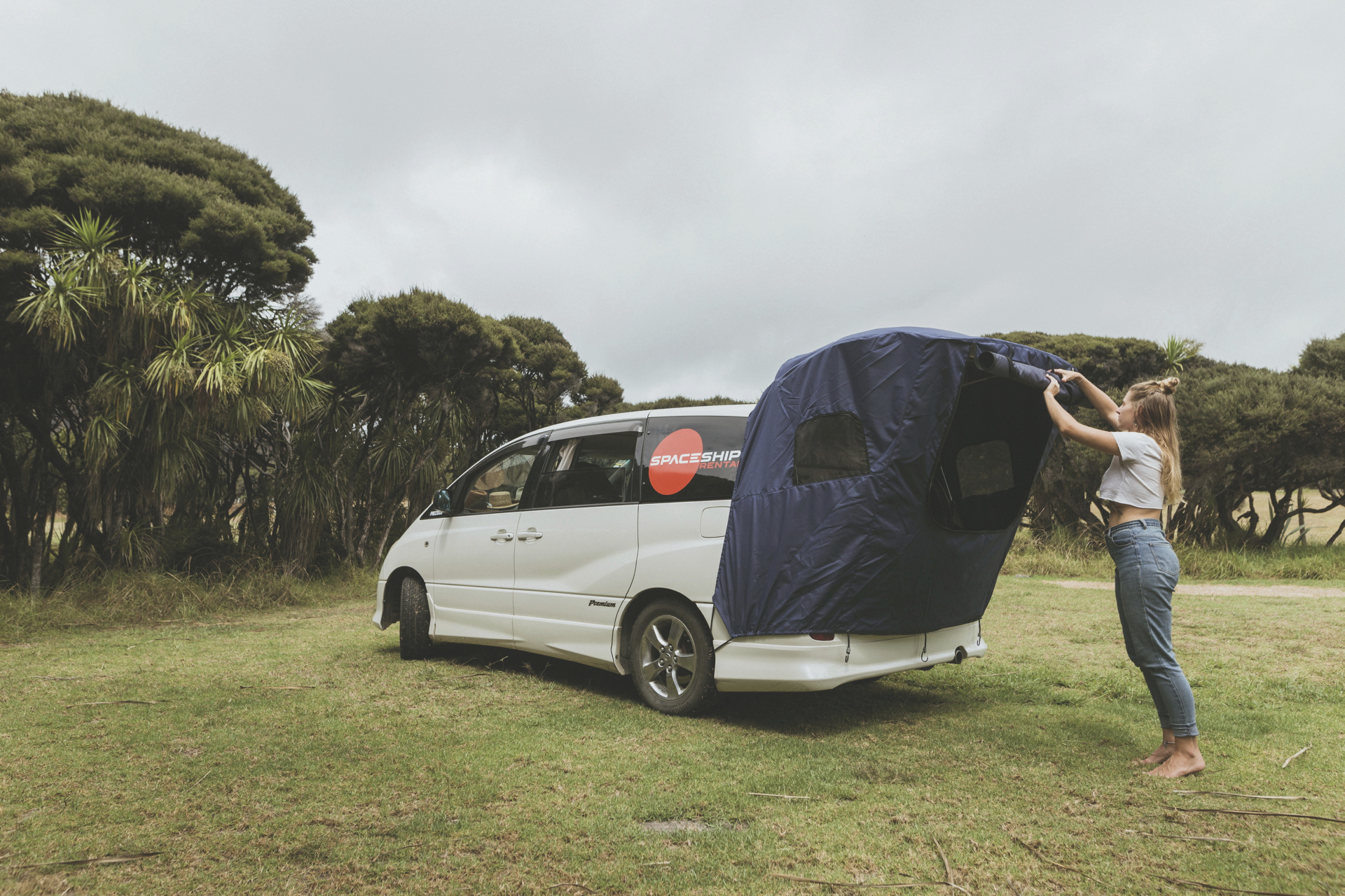 11/16©Louise Pillon PhotographyZeltanbau bei geöffneter Heckklappe