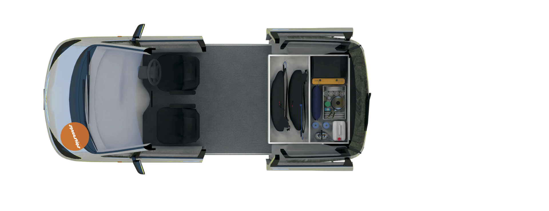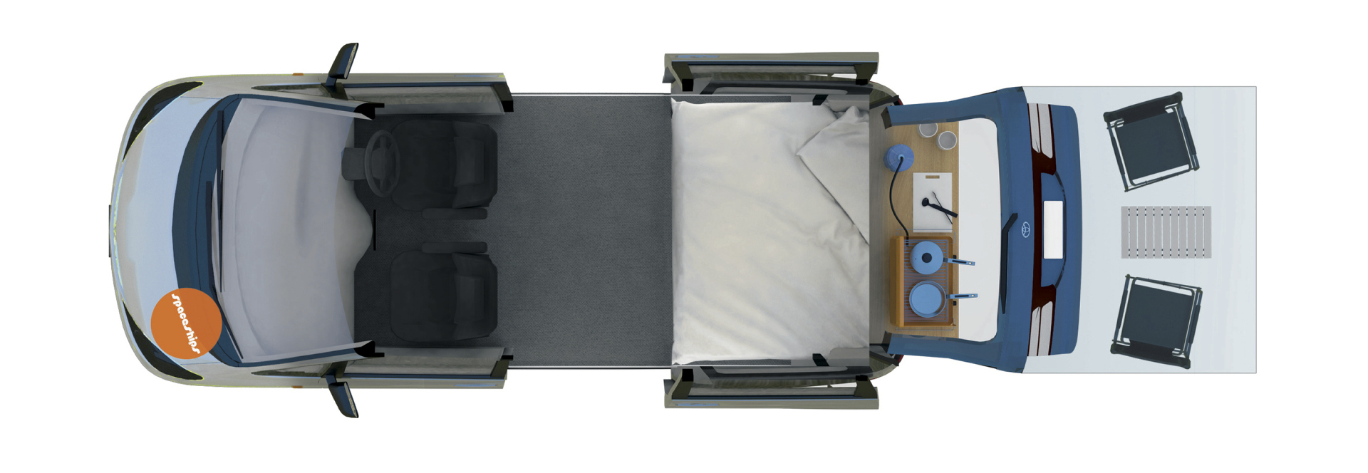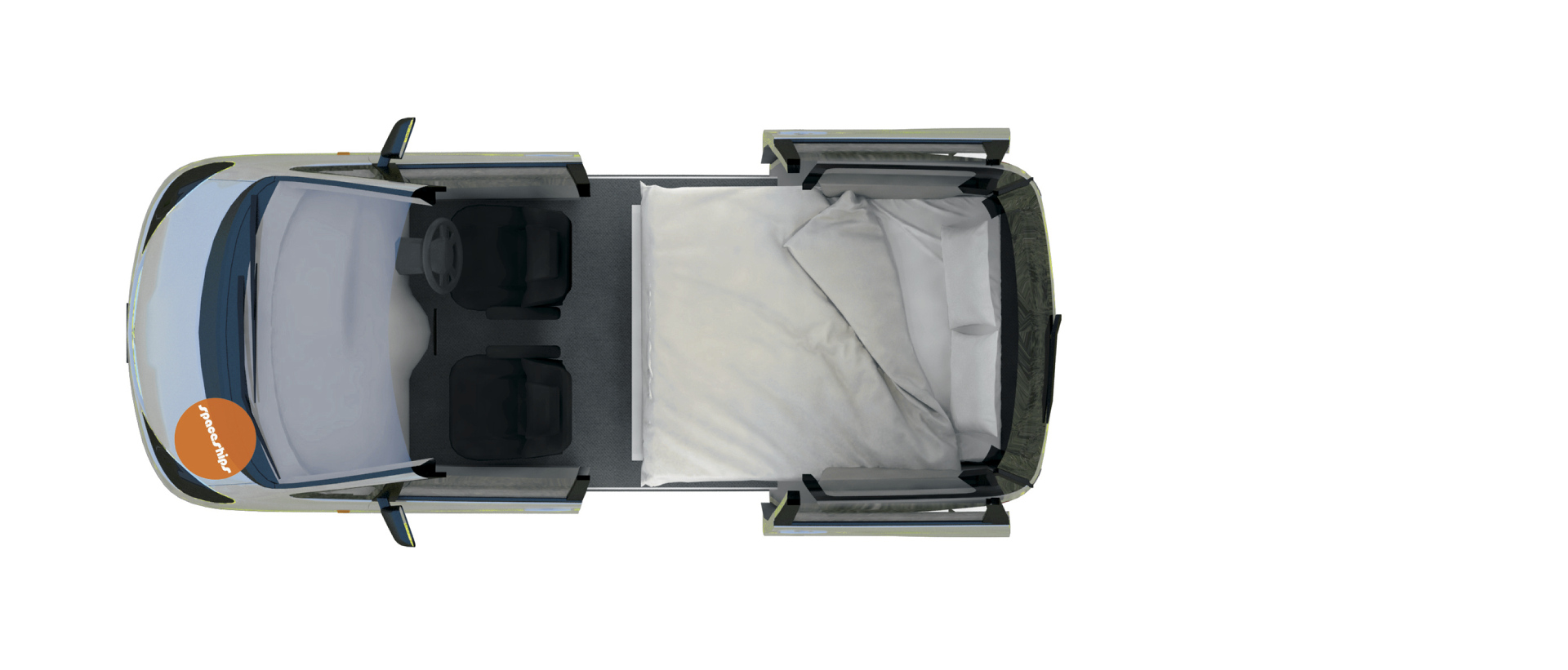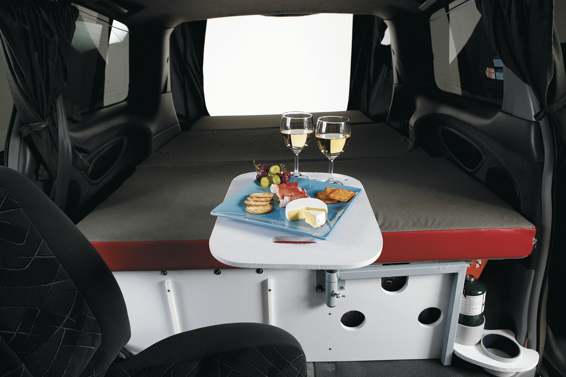 • Rückbank, zum Doppelbett umbaubar: 1,90 x 1,40 m(bei geöffneter Heckklappe: 2,30 x 1,40 m)