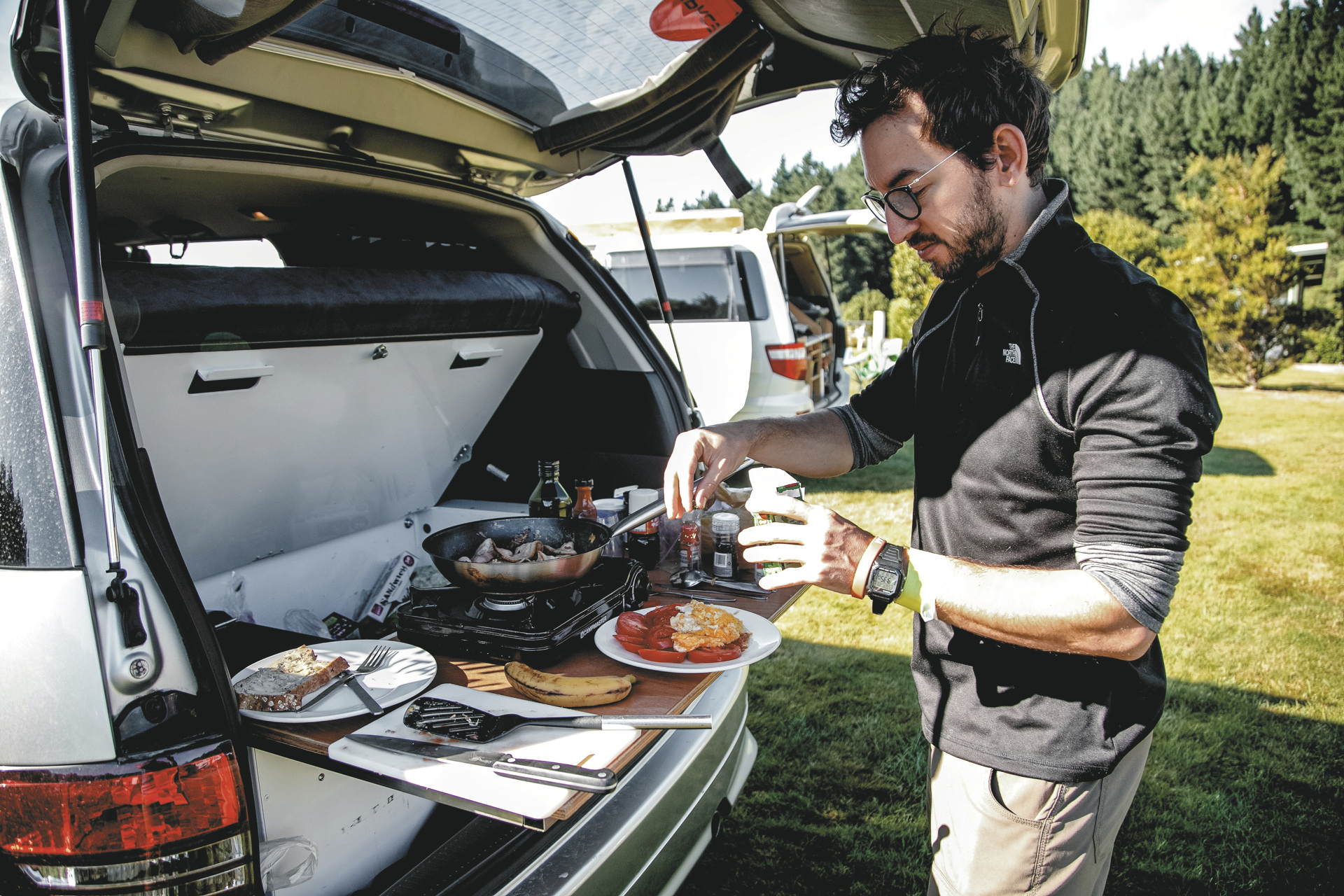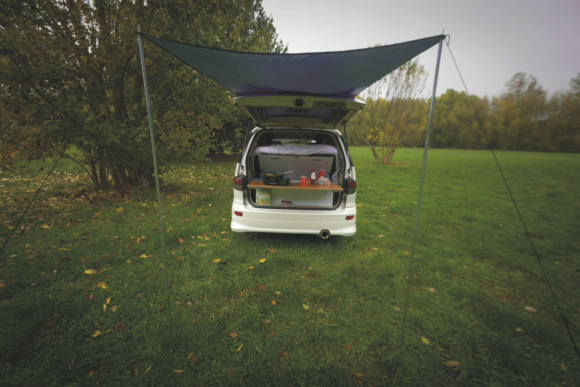 11/14©Rusty CrawshawZeltanbau bei geöffneter Heckklappe