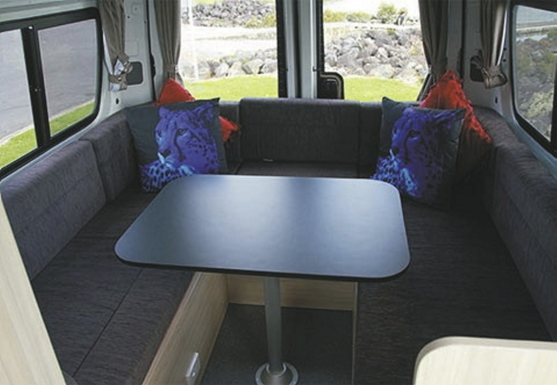 • Sitzgruppe im Heck, zum Doppelbett umbaubar (1,83 x 1,81 m)