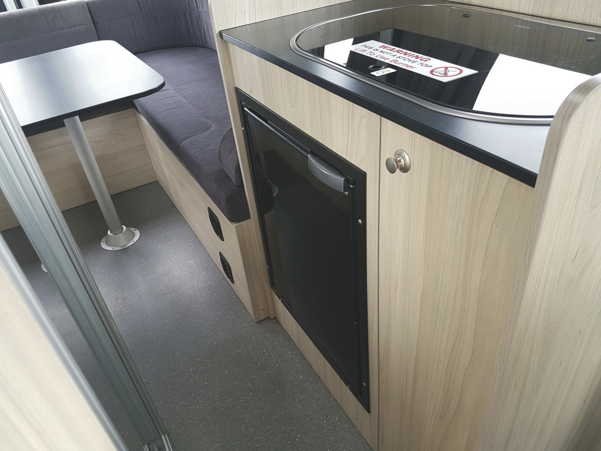 • 80 l Frisch- und 127 l Abwassertank, zusätzlich 20 l Heißwasserspeicher