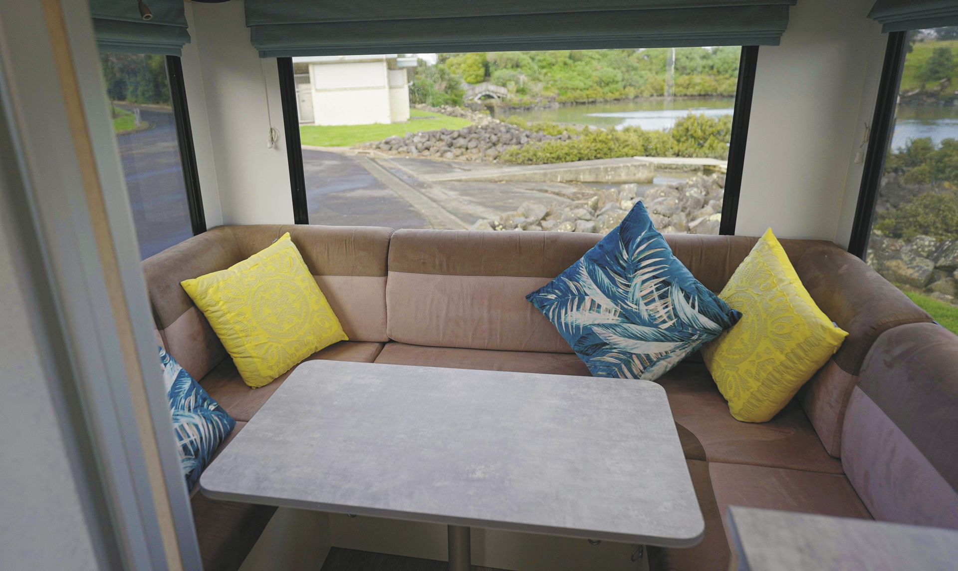 • Sitzgruppe im Heck, zum Doppelbett umbaubar (2,14 x 1,45 m)