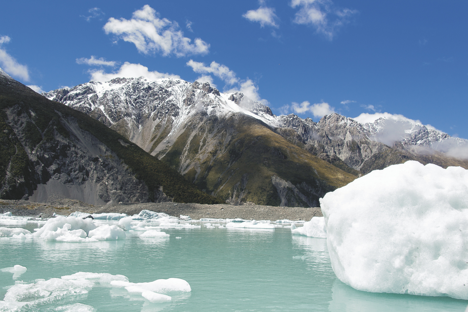 Mt. Cook (F/A).Heute besuchen wir Neuseelands größten Gletscher, den Tasman-Gletscher. In einem speziellen und sehr stabilen Schlauchboot fahren wir über den Gletschersee bis nahe an die Eiswand. Probieren Sie das über 400 Jahre alte Gletschereis. Am Nachmittag bleibt Zeit für eine Wanderung durch die alpine Landschaft.