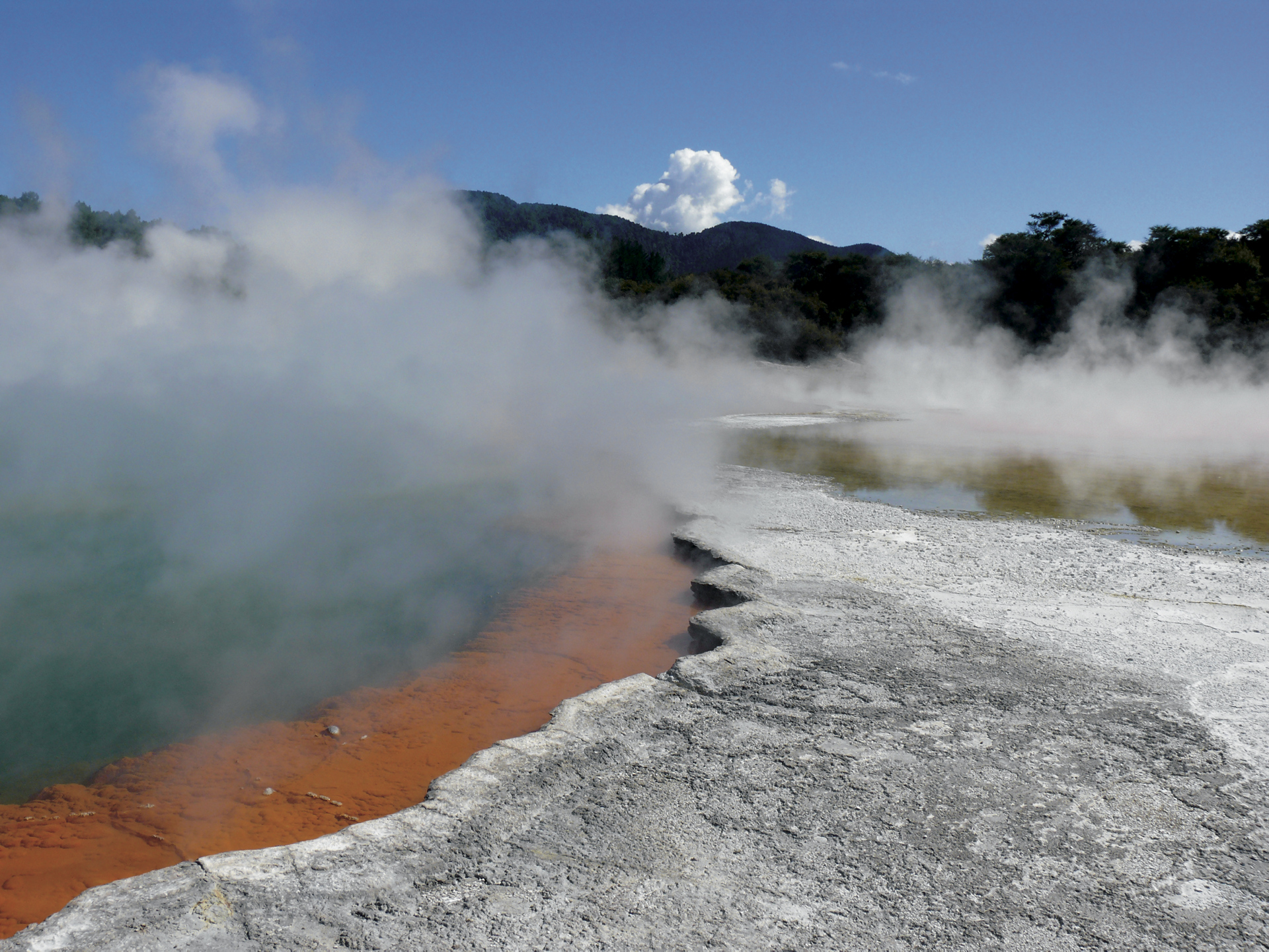 Rotorua (F/A).Der Höhepunkt des heutigen Tages ist eine Segeltour auf Lake Rotoiti. Vergessen Sie nicht die Badesachen für ein Bad in den Thermalpools von Manupirua. Am Nachmittag geht es vorbei an Blue und Green Lake zum begrabenen Dorf Te Wairoa. Abends besuchen wir das Whakarewarewa Thermalgebiet und erleben eine Kulturvorführung der Maori und ein Hangi (Erdofenessen).