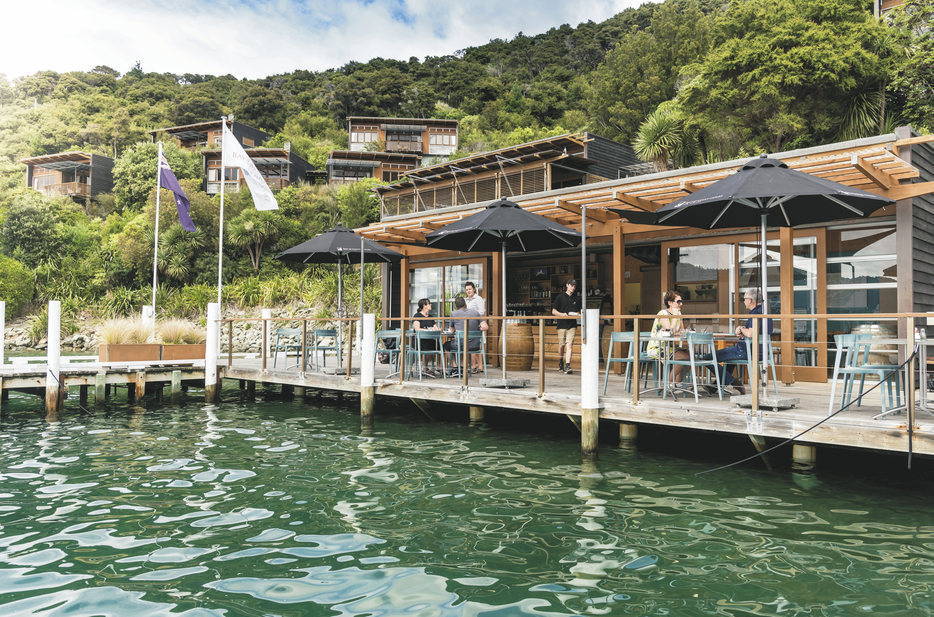Umgeben von der zeitlosen Schönheit der Natur können Sie hier entspannen und das Außergewöhnliche der heutigen Zeit entdecken: Ruhe. Tauchen Sie ein in die unberührte Natur der Inseln und Landzungen des Marlborough Sound, wandern Sie durch ursprünglichen neuseeländischen Busch, "hören" Sie die Stille, unterbrochen nur von sanftem Wellenschlag oder Vogelrufen.Das Resort eignet sich gut für den „kleinen Urlaub zwischendurch“. Mehrere in den Hang gebaute Bungalows mit traumhaftem Ausblick umgeben das Haupthaus und den Swimmingpool. Ein exklusives Feinschmeckerrestaurant, dessen Köche die besten Zutaten aus dem Meer und vom Land zu unvergesslichen Gerichten komponieren, mit einer umfangreichen Auswahl neuseeländischer Weine oder das einladende Hafencafé laden zu kulinarischen Erfahrungen ein.