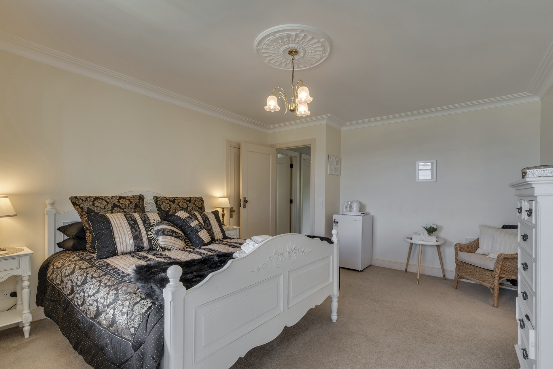 Das Haus liegt in einem ein Hektar großen Garten mit einheimischen Büschen und Bäumen und gepflegten Rasenflächen. Beobachten Sie die Tuis, eine einheimische Vogelart, während Sie eine Partie Petanque spielen oder auf der Veranda einen neuseeländischen Wein und eine Käseplatte genießen.Eine luxuriöse Ausstattung und eine spektakuläre Aussicht, die Sie von Ihrem eigenen Balkon aus durch die Flügeltüren Ihrer Suite genießen können, erwarten Sie hier. Liz und Steve werden Sie verwöhnen. Ein 4-gängiges Abendessen kann vorab gebucht werden. Unser Tipp: min. 2 Nächte.