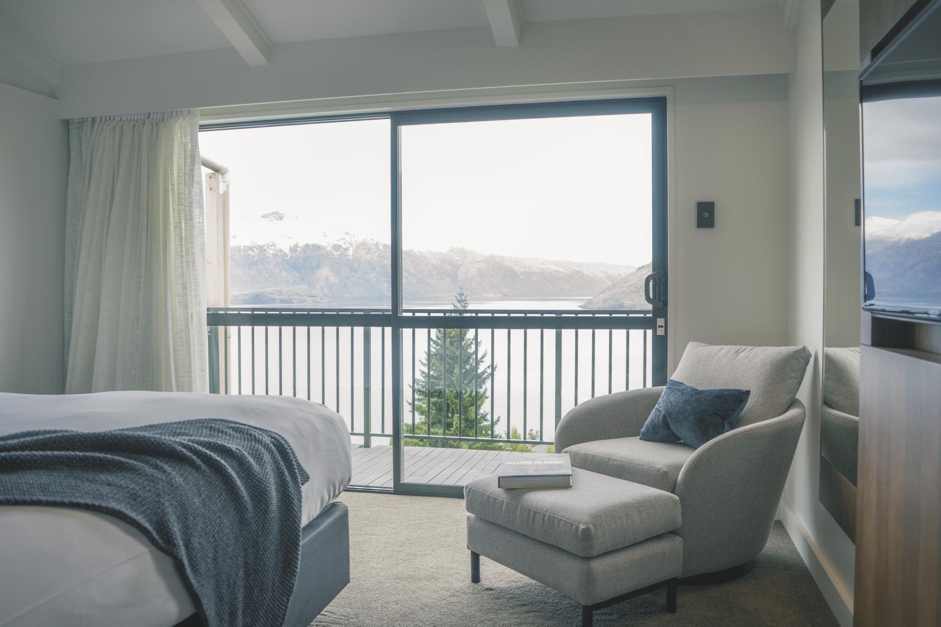 Schönes Mittelklasse-Hotel im ruhigen Vorort Fernhill mit traumhaftem Blick über Lake Wakatipu