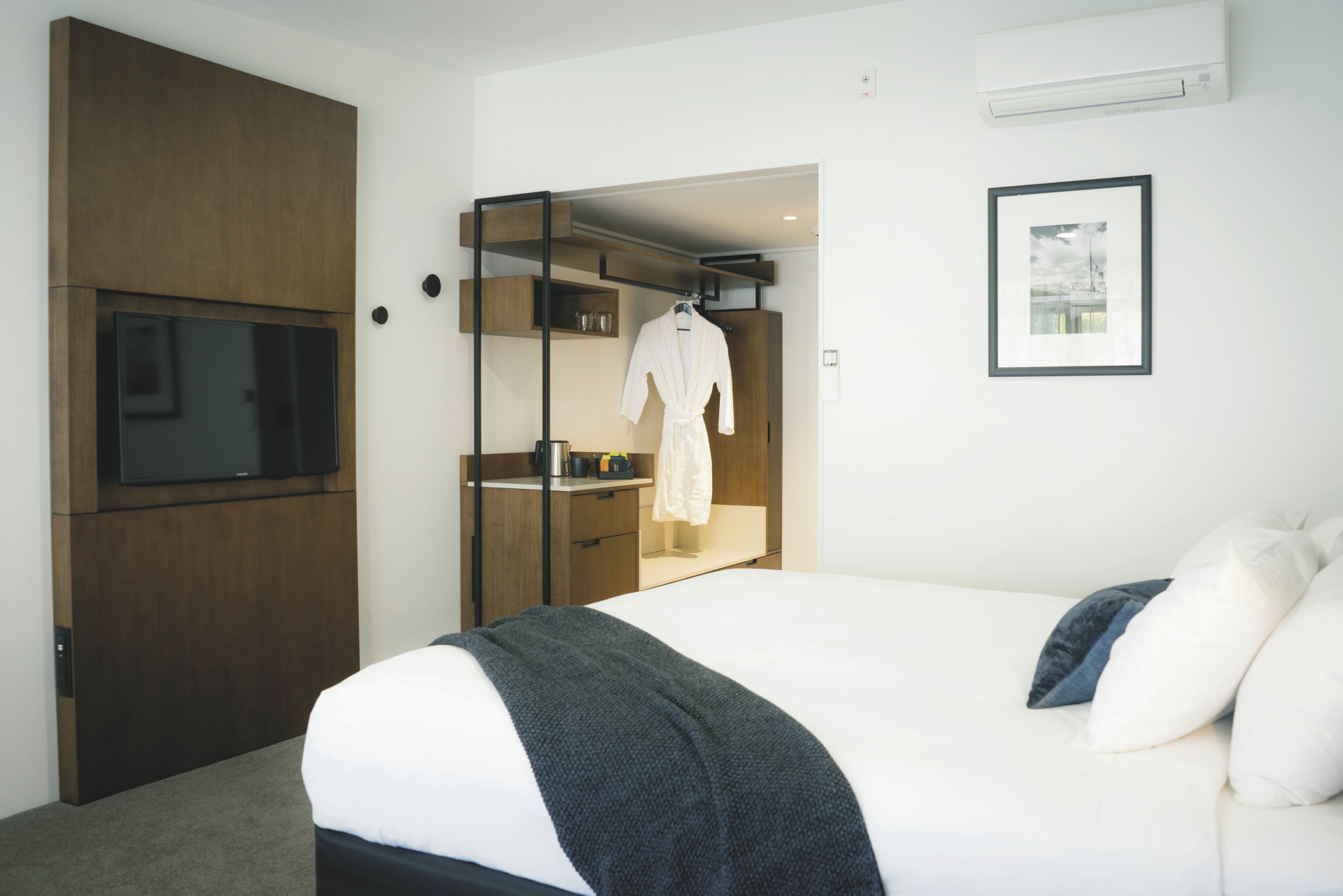 Es gibt Zimmer mit oder ohne Seeblick. Alle sind sehr ansprechend und modern eingerichtet, manche verfügen über einen Balkon. WLAN kostenlos.