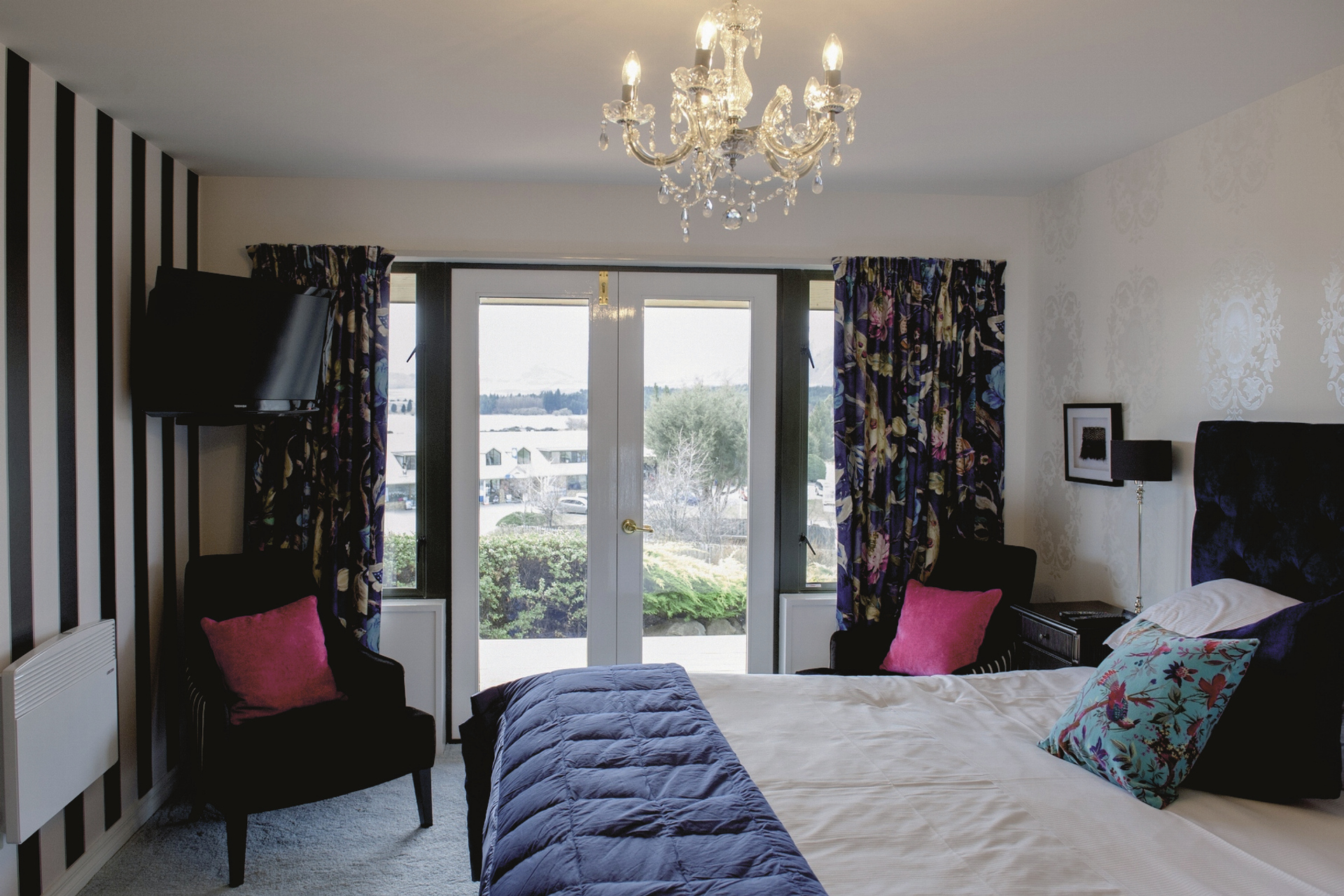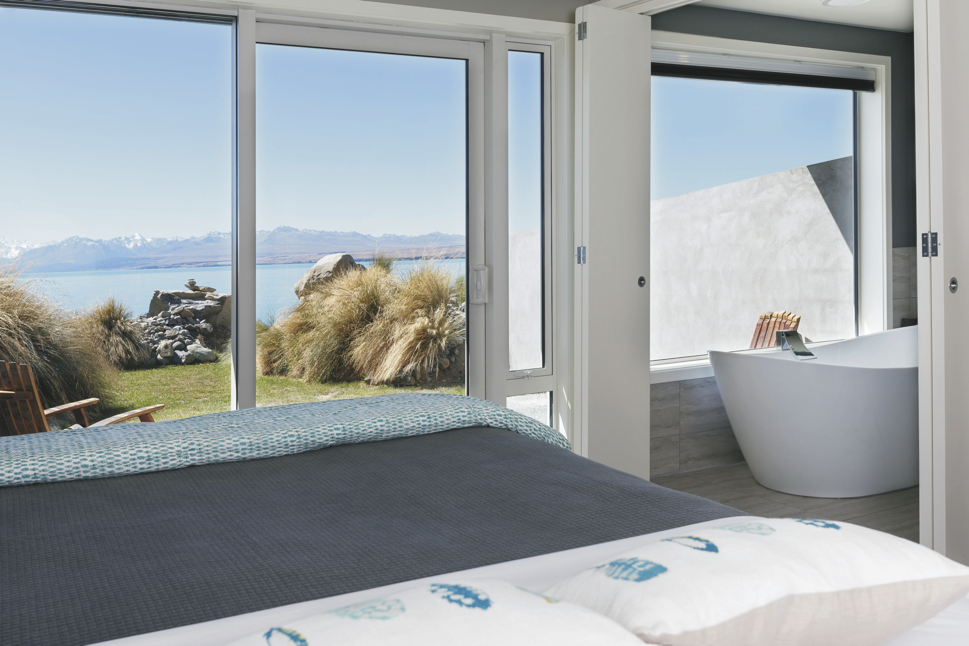 Die Lodge verfügt über sechs Gästezimmer mit bodentiefen Fenstern und kleiner Terrasse für einen ungestörten Blick auf den Pukaki-See und die Südalpen. Alle Zimmer mit DU/WC.